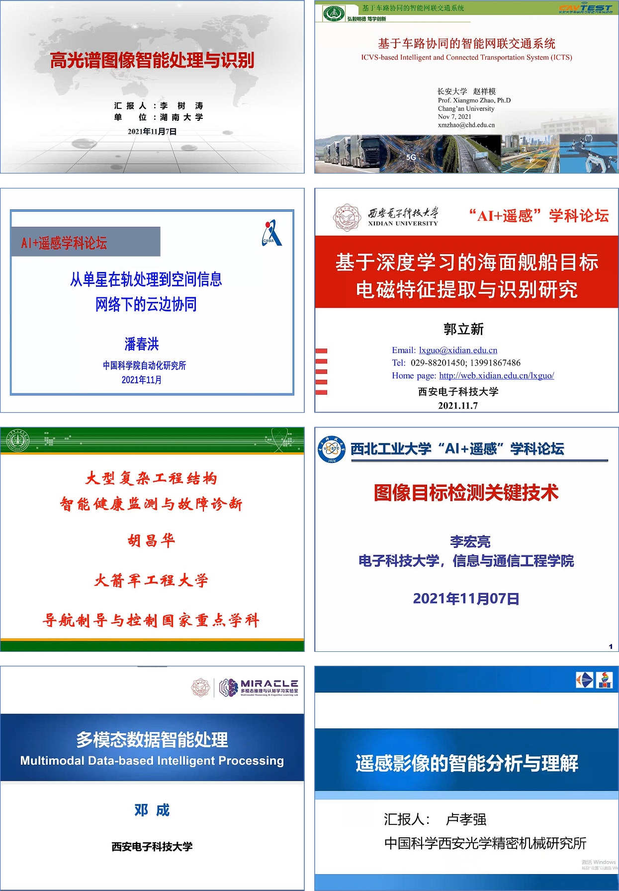 湖南大学李树涛教授分享了高光谱图像智能处理与识别的相关研究,长安大学赵祥模教授介绍了基于车路协同的智能网联交通系统,中国科学院自动化研究所潘春洪研究员分享了从单星在轨处理到空间信息网络下的云边协同,西安电子科技大学郭立新教授介绍了基于深度学习的海面舰船目标电磁特征提取与识别研究,火箭军工程大学胡昌华教授分享了大型复杂工程结构智能健康监测与故障诊断,电子科技大学李宏亮教授分享了图像目标检测技术,西安电子科技大学邓成教授分享了多模态数据的认知与推理,中国科学院西安光学精密机械研究所卢孝强研究员报告了遥感影像的智能分析与理解,巨乳做爱