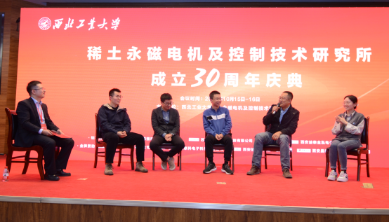 庆典活动接近尾声,分别由罗玲教授和焦宁飞副研究员主持,对毕业校友及在校的研究生进行访谈,大家在一起对往日校园的生活、老师的谆谆教诲及毕业后工作与生活得到的深远影响进行交流与分享。最后稀土永磁电机及控制技术研究副所长窦满峰教授致庆典活动闭幕辞,庆典活动圆满结束。