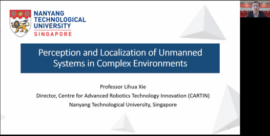 副院长刘准钆教授分别主持。谢立华院士作了题为“Perception and Localization ofUnmanned Systems in Complex Environments”的开场大会报告,就利用异构传感器融合和深度学习算法进行感知和导航的最新进展进行了介绍,并对该领域未来可能的发展方向进行了讨论,演示了无人系统在结构检测和物流中的应用。