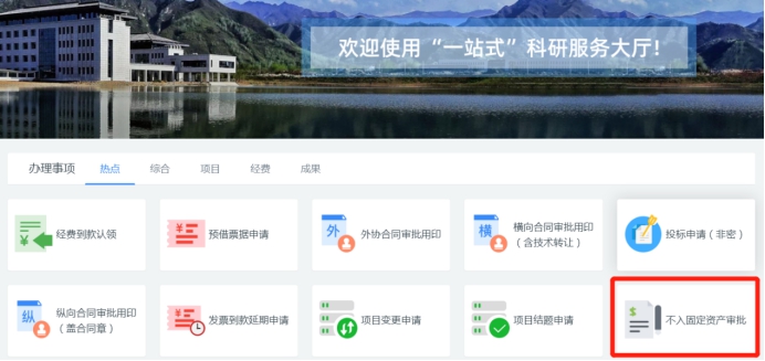 2. 办理地址:登录翱翔门户,点击“科研系统”进入系统巨乳做爱;在巨乳做爱办理事项栏选择“不入固定资产审批”。