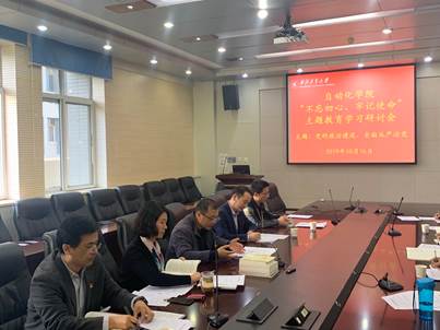 于2019年10月16日下午2:00在341会议室召开以“党的政治建设、全面从严治党”为主题的“不忘初心、牢记使命”主题教育第二次集中学习研讨会。学校统战部副部长、“不忘初心、牢记使命”主题教育第三巡回指导组副组长马西平、院党委书记潘泉、副书记邱若娟、李伟林,副院长李爱军及各系党支部书记参加此次大会。会议由潘泉书记主持。