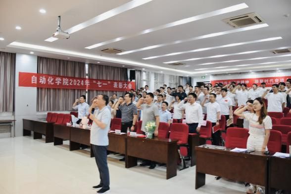 在多功能报告厅隆重召开2024年“七一”表彰大会,学院领导班子成员、党委委员、受表彰集体和个人、师生党支部书记代表、2024年新发展党员等参加本次大会,大会由党委副书记易正阳主持。