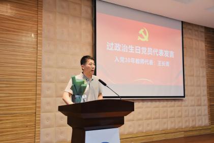 入党40年教师党员,学院原院长、党委书记潘泉教授为大家讲述了个人入党历程,以及入党40年的奋斗感想,并鼓励青年学子和青年教师要着眼当下、奋力拼搏,书写一部无悔于青春、无悔于时代的青春奋斗史。