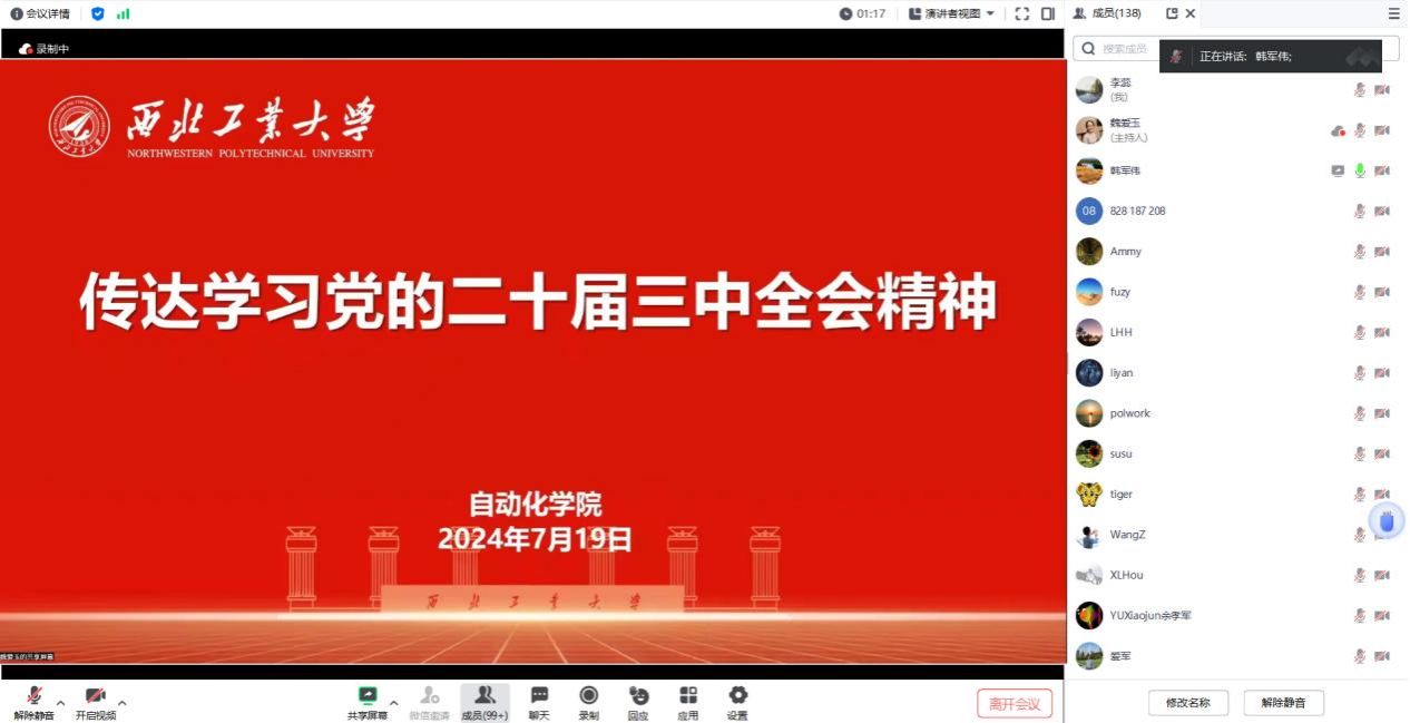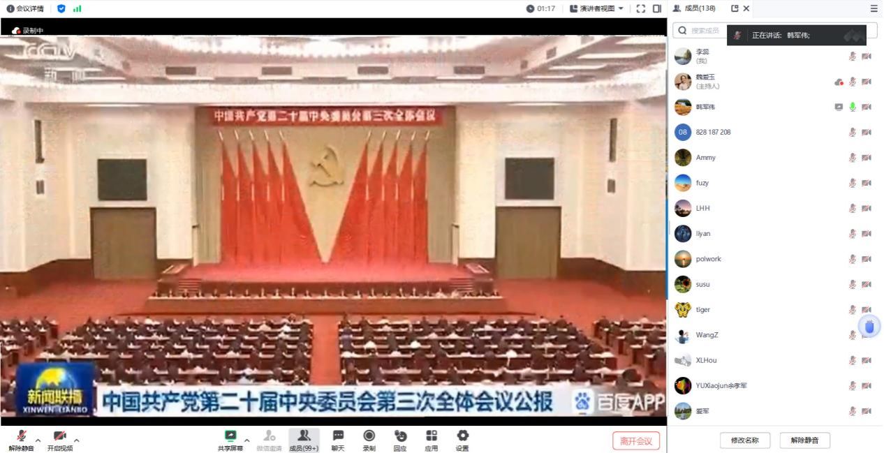 7月19日下午,巨乳做爱 党委召开集体学习会,传达学习贯彻党的二十届三中全会精神,研究贯彻落实举措,会议以线上线下相结合的形式召开。学院领导班子和全体教职工参会,会议由学院党委书记李伟林主持。