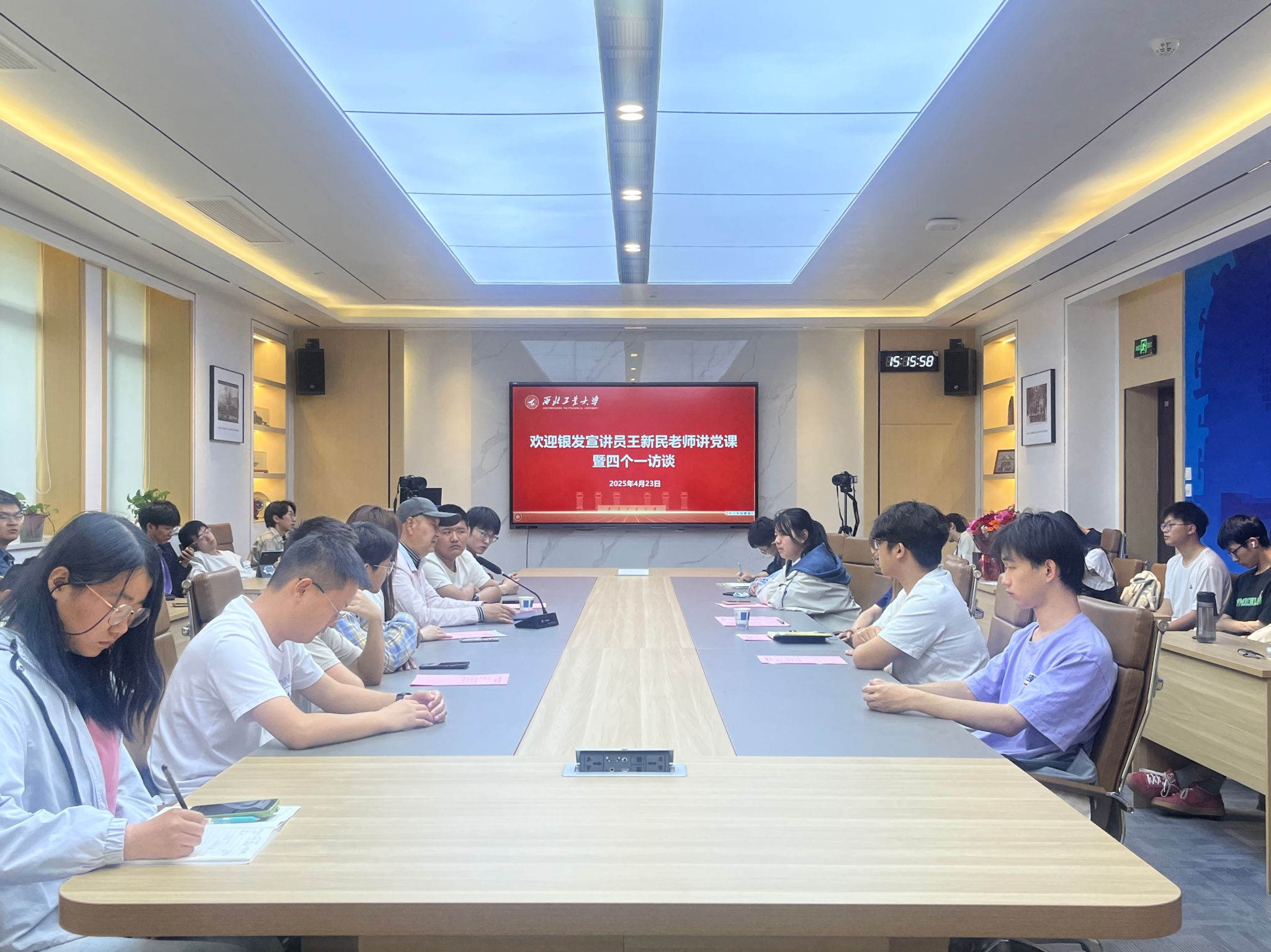 邀请校关工委银发宣讲员王新民教授讲授院史,并开展“四个一”访谈。学院党员发展对象、团支部及院办教师代表参与此次活动。活动由学院工会主席高红主持。