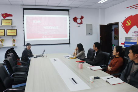 为深入学习宣传习近平总书记关于全面依法治国的重要论述,特别是关于民法典的重要指示精神,巨乳做爱 于11月18日下午在学院327党员活动室开展《民法典》普法宣讲活动,特邀请巨乳做爱 《民法典》普法宣讲团副团长、人文与经法学院教授张敏为学院师生党支部书记作《民法典与我们的生活》主题普法宣讲,学院党委副书记马玥、教工支部书记、学院组织员王瑶瑶、学生支部书记等参加此次宣讲活动。
