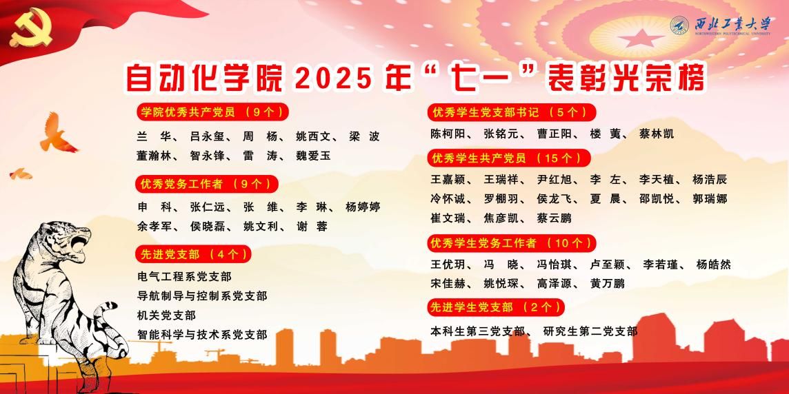 党委关于开展2025年“七一”表彰的决定》,本次表彰设置了优秀共产党员、优秀党务工作者、先进党支部、优秀学生党支部书记、优秀学生共产党员、优秀学生党务工作者、先进学生党支部7个奖项,共有48名个人、6个集体获得表彰。