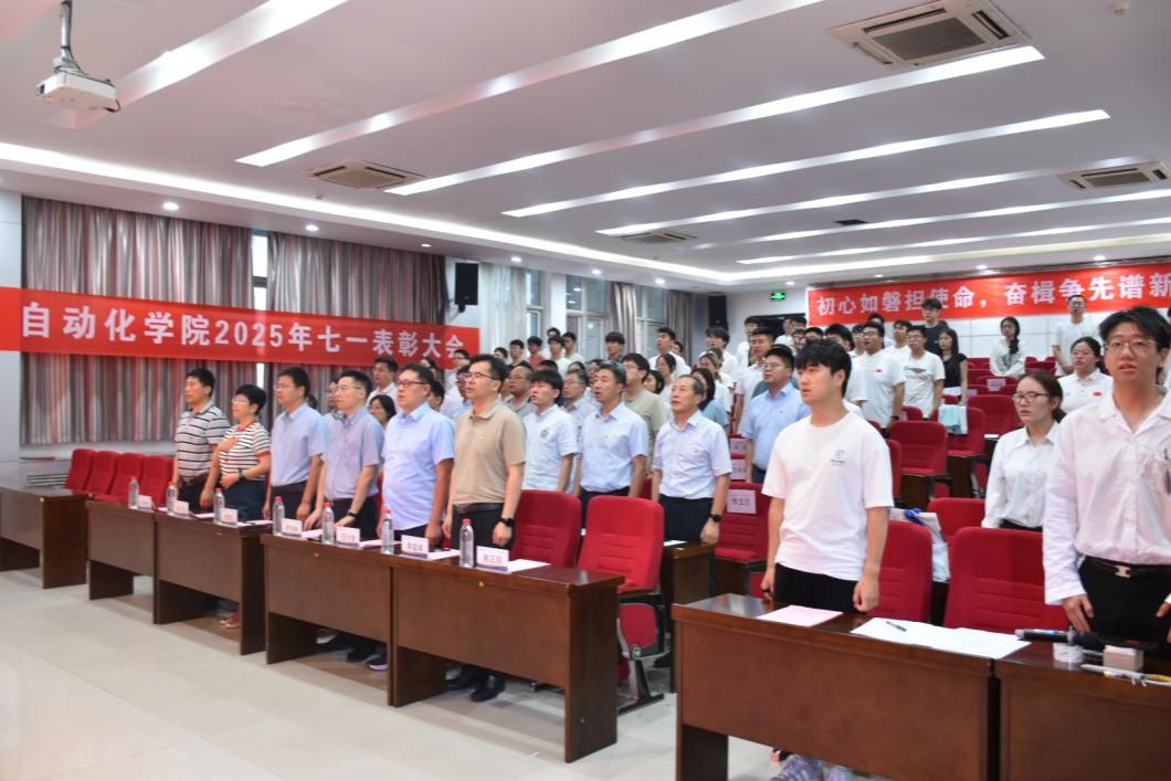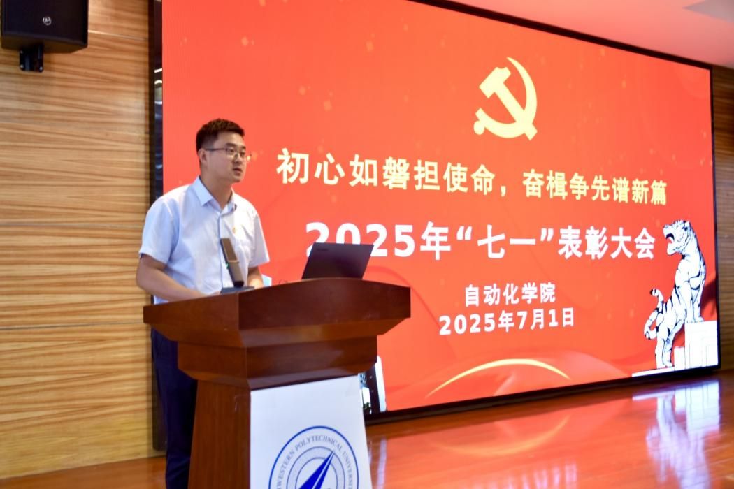 在学院报告厅召开2025年“七一”表彰大会。学院领导班子成员、党委委员、受表彰集体和个人、师生党支部书记代表以及新发展党员等参加本次大会。大会由党委副书记易正阳主持。