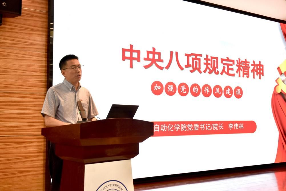 最后,党委书记李伟林讲授深入贯彻中央八项规定精神学习教育专题党课。他围绕学习领会和贯彻执行中央八项规定及其实施细则精神,联系思想和工作实际,深入阐述了中央八项规定精神的丰富内涵,并结合高校实际,对中央八项规定中的具体要求和反面典型案例进行了重点剖析。希望全院师生党员严格遵守中央八项规定精神,做好对照查摆,把深入贯彻学习教育作为提升自身政治素养和业务能力的重要途径,不断强化理论学习,切实改进工作作风,为推动学院高质量发展提供坚实作风保障。