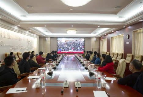学院领导班子、党委理论学习中心组成员、教工党支部书记等集中观看开幕会直播