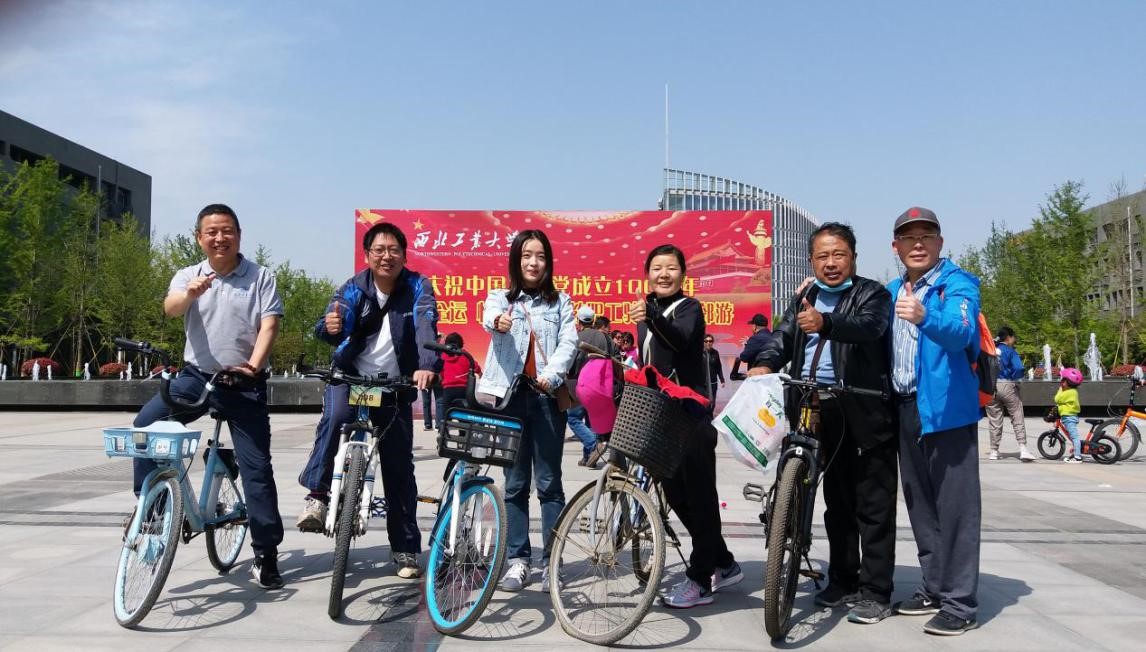 部门工会的组织下,学院教职工参加庆祝中国共产党成立100周年骑自行车郊游活动。