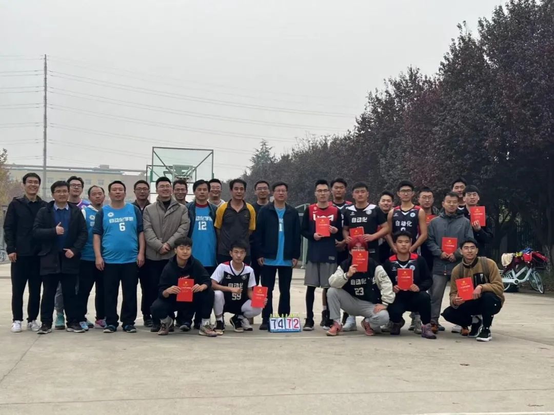 学院党委副书记(主持工作)李伟林为篮球赛开球。在激烈的比拼中,老师和学生都展现出强劲实力,同学们生龙活虎、老师们稳重老道,师生之间的精彩互动引得现场欢笑连连,最终教师联队以74:72险胜,为本次比赛画上完美的句号。赛后,老师与同学们亲切握手,学院党委副书记管峻为学生联队颁发党的二十大报告学习笔记,比赛在愉快的气氛中圆满结束。