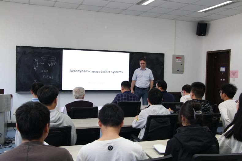 尤里教授和德米特里教授对飞行器综合体效能分析国际科技合作基地、中俄国际空间系绳系统研究中心、飞行控制与仿真陕西省重点实验室的研究生进行了学术指导,并分别开展了“空间系绳系统动力学建模系列讲座”“气动系绳系统动力学系列讲座”。学院飞行控制与仿真陕西省重点实验室主任李爱军教授,学院飞行器综合体效能分析国际科技合作基地副主任、中俄国际空间系绳系统研究中心常务副主任、导航制导与控制系主任王长青教授全程陪同。