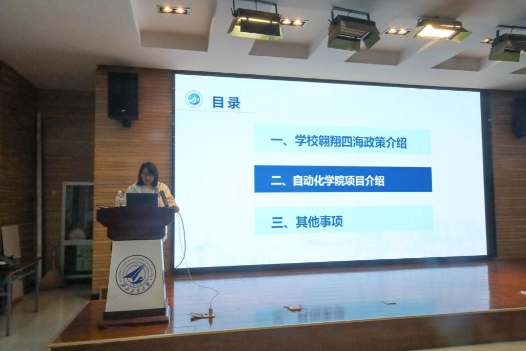 焦健简要讲解了学校2025年翱翔四海项目的概况及政策介绍,然后从交流项目类型、课程介绍、申请条件、资助政策及注意事项等方面,着重介绍了学院2025亚琛工业大学人工智能与自动化应用项目、俄罗斯萨马拉大学寒假夏令营——空间科学与技术项目、日本筑波大学科技冬令营项目的具体情况,并通过照片、视频等分享了往届海外交流项目的学习生活情况。她鼓励同学们积极参与国际交流项目,不断提升自身能力。