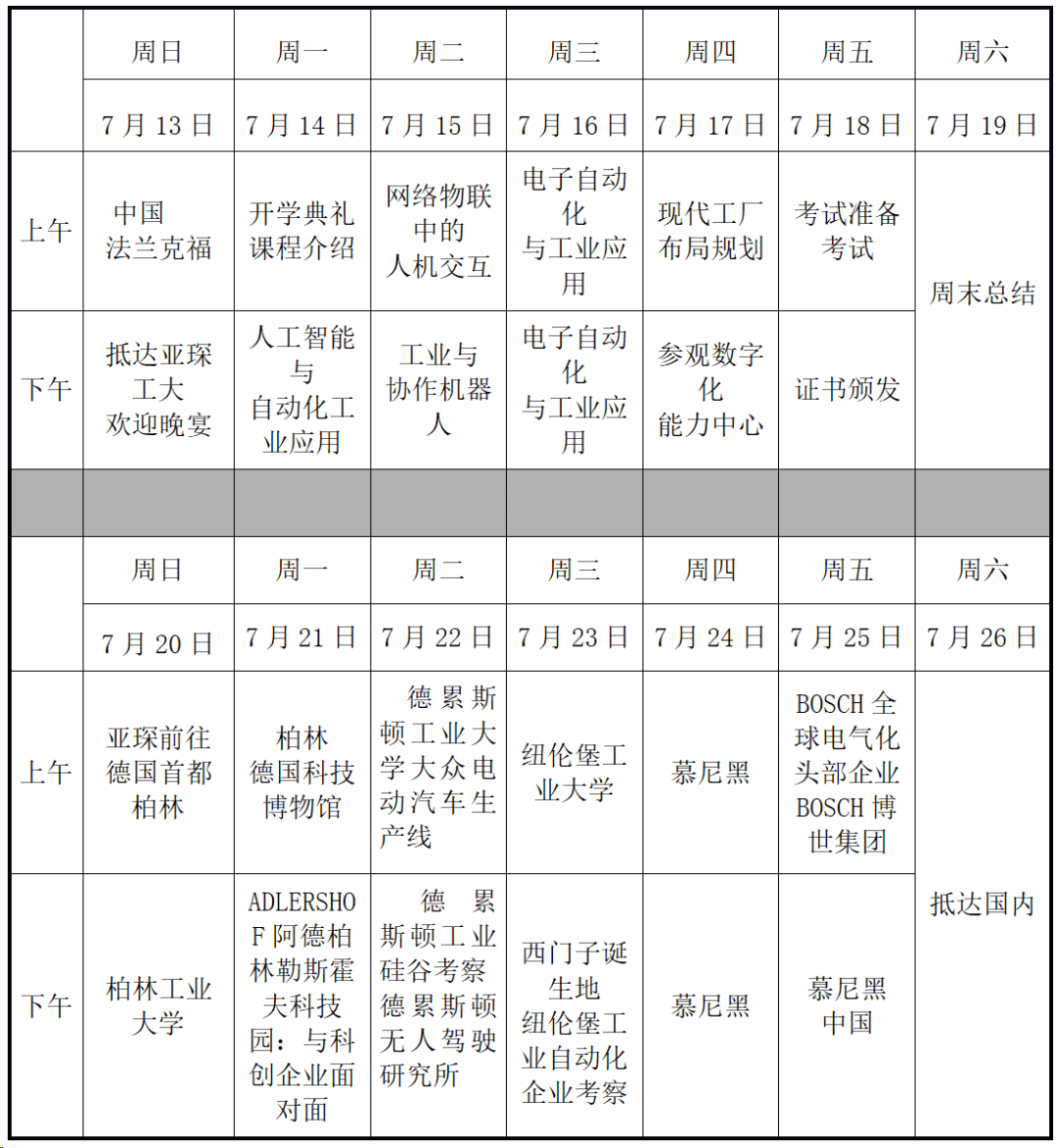 本项目为我校专业定制课程,围绕人工智能与自动化课程,走进德国知名高校和企业,体验人工智能与自动化在现代工业中的实际应用。