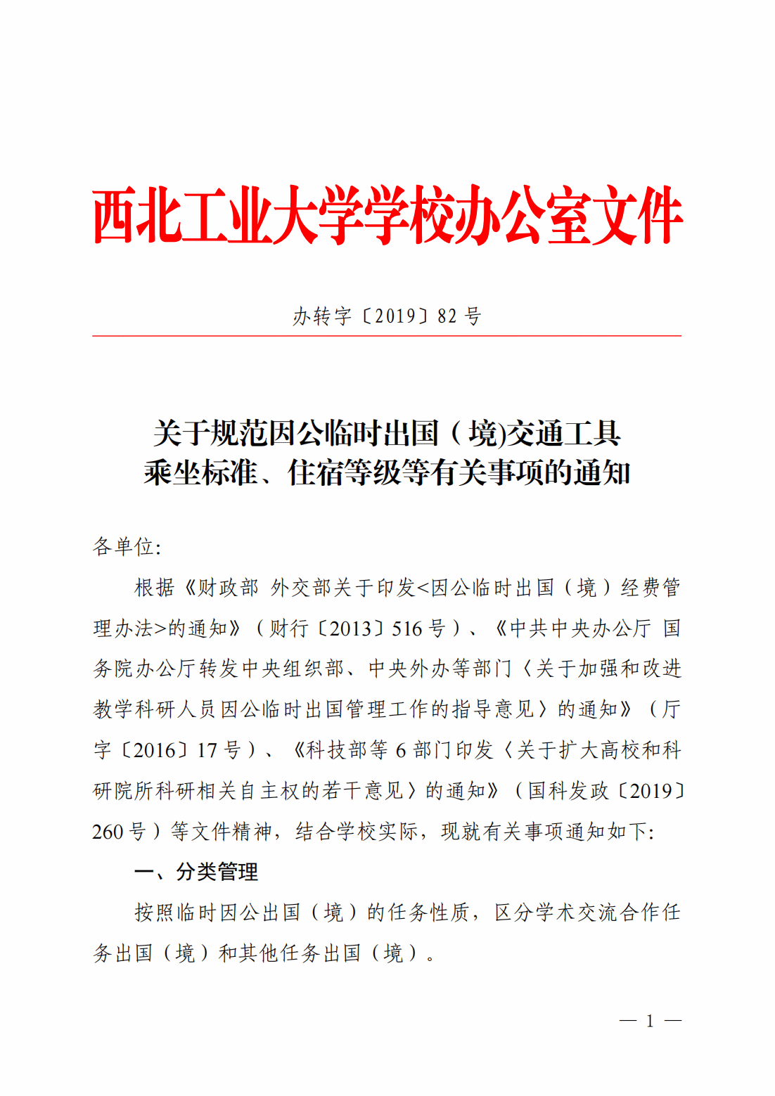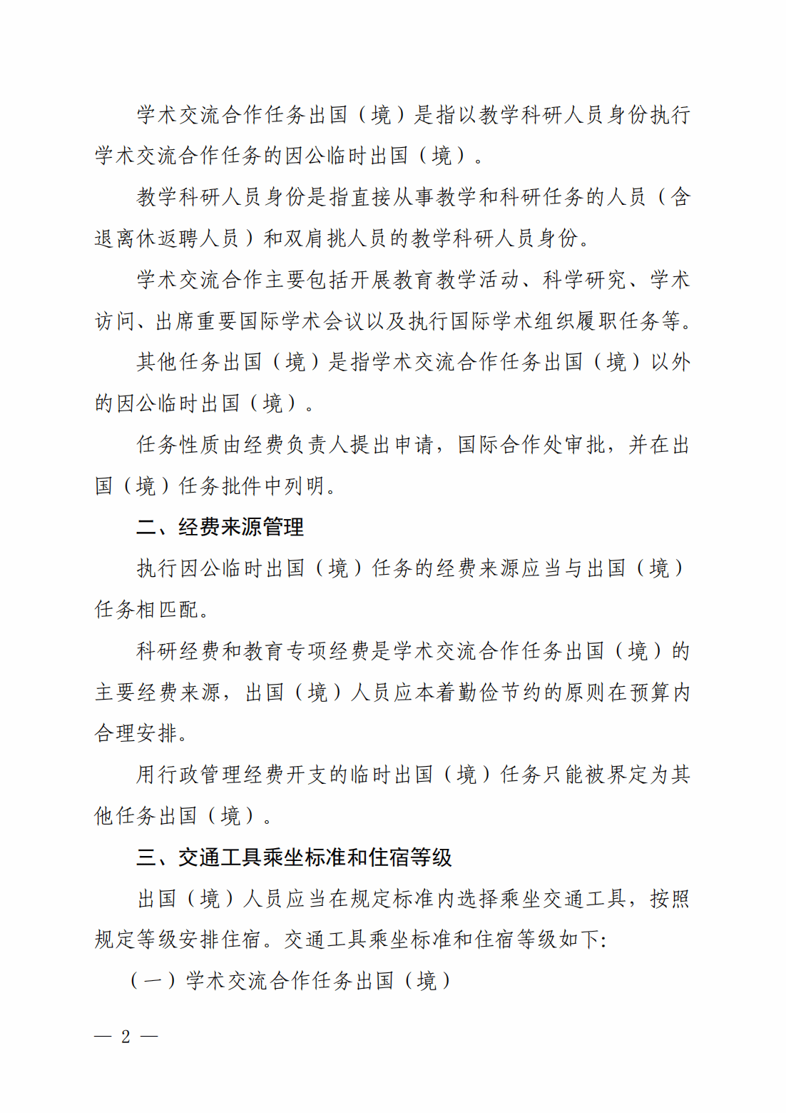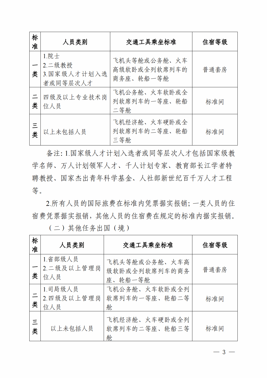 关于规范因公临时出国(境)交通工具乘坐标准、住宿等级等有关事项的通知