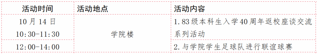 温馨提示:校友周期间,学校将举办校友系列赛事,感兴趣的校友可点击活动链接查看场馆信息(校友体育文化节赛事安排),自行前往观赛。