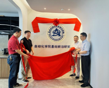 在揭牌仪式阶段,韩军伟、李伟林及团队负责人代表潘泉教授、张晓斌教授共同为基础前沿研究中心揭牌。现场掌声经久不息、气氛欢快热烈。