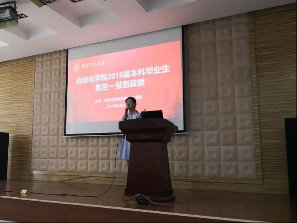 根据党委学生工作部、校团委《关于做好2019届本科生毕业教育工作的通知》要求,牢筑毕业生理想信念与思想根基,教育引导毕业生担当时代责任、勇于砥砺奋斗,611日上午,巨乳做爱 2019届本科毕业生“最后一堂思政课”在巨乳做爱 报告厅开讲。自动化学院党委书记潘泉以“秉承西工大精神,做新时代的奋斗者”为题,为学院全体2019届毕业生进行讲授,思政课由辅导员高莹主持。