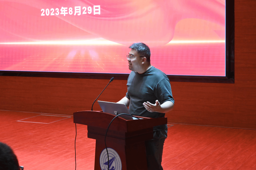 李伟林结合从高中到大学的转变过程,为新同学们形象讲解了大学生活学习过程中会发生的变化,并利用一系列“大学关键词”,分门别类地为同学们介绍了在未来生活中面临的各种问题及选择。他鼓励同学们要多尝试、多努力,善于把握机会,在大学期间不负韶华不负己,努力成长发展为“总师型”人才,成就自身梦想。