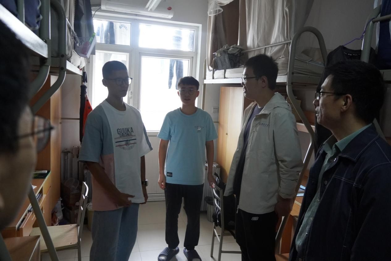 慰问期间,领导老师同时还走访了部分新生宿舍,与新生亲切交谈,进一步询问学习生活情况,并排查宿舍安全隐患。