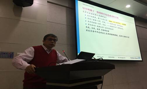 学院党委副书记李伟林针对于郁总的报告对在场学生提出几点期望,希望同学们能够再接再厉,提高自己的学习能力和适应新环境的能力。同时,强调要针对个人实际做出正确选择,珍惜时间,奋发向上。