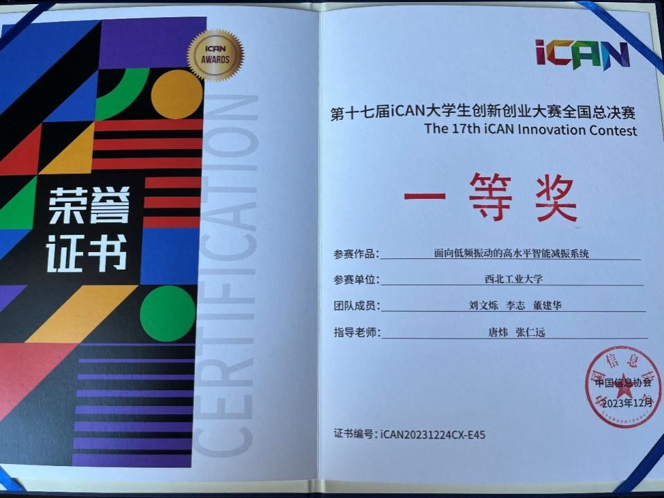 “零波智芯”团队作品“面向低频振动的高水平智能减振系统”荣获该竞赛全国一等奖。在今年8月13日广东东莞举办的第十八届研究生电子设计大赛商业计划书专项赛中,该团队已荣获全国二等奖。