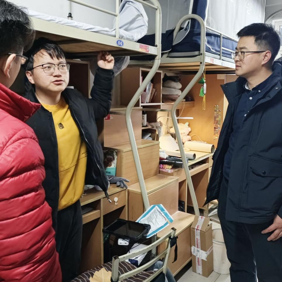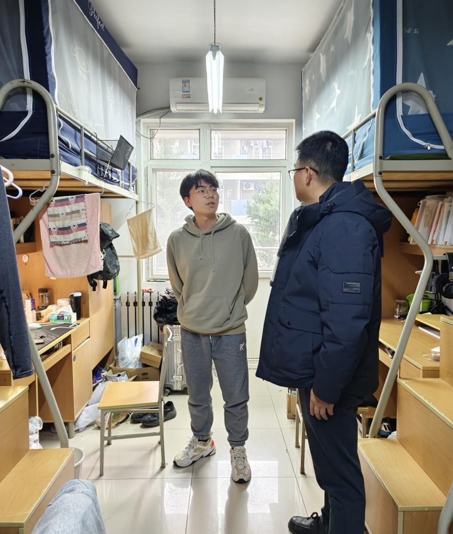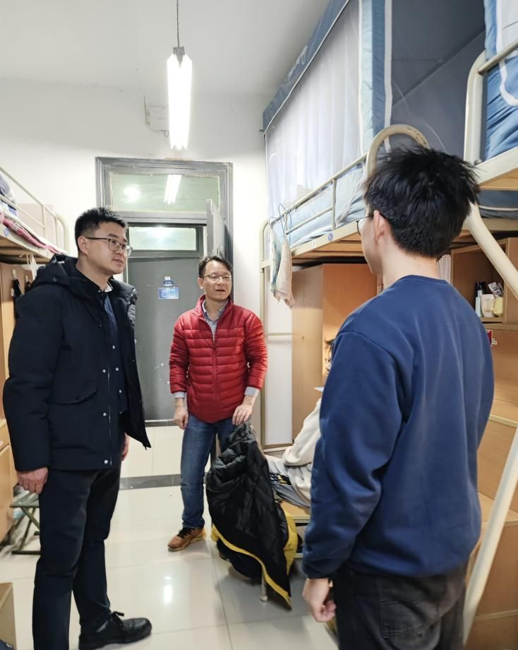 学院党委副书记易正阳走访宿舍过程中,重点对宿舍卫生状况、用电安全、返校情况等进行全面检查,对存在问题的宿舍提出明确整改要求;与大四学生深入交流,了解大家思想动态、考研情况、职业规划等,解答大家在学习生活中遇到的困惑,鼓励同学们把握机遇,明确职业规划,认真准备考研复试,积极参加招聘会,力争上大舞台、上主战场。