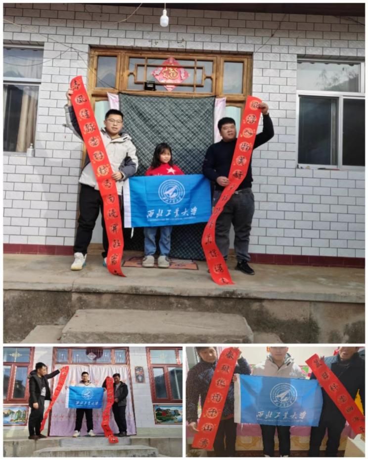 活动伊始,实践小队的队长罗棚羽同学提前在学校完成了部分春联的书写工作,郑璞泉同学则负责将这些春联送给家乡有需求的家庭。红色的对联象征着来年生活越过越红火,收到对联的乡亲们无不洋溢着幸福的笑容,他们对罗同学的一手好字赞不绝口,同时也向志愿者以及西工大学子给予了鼓励和诚挚的赞美。