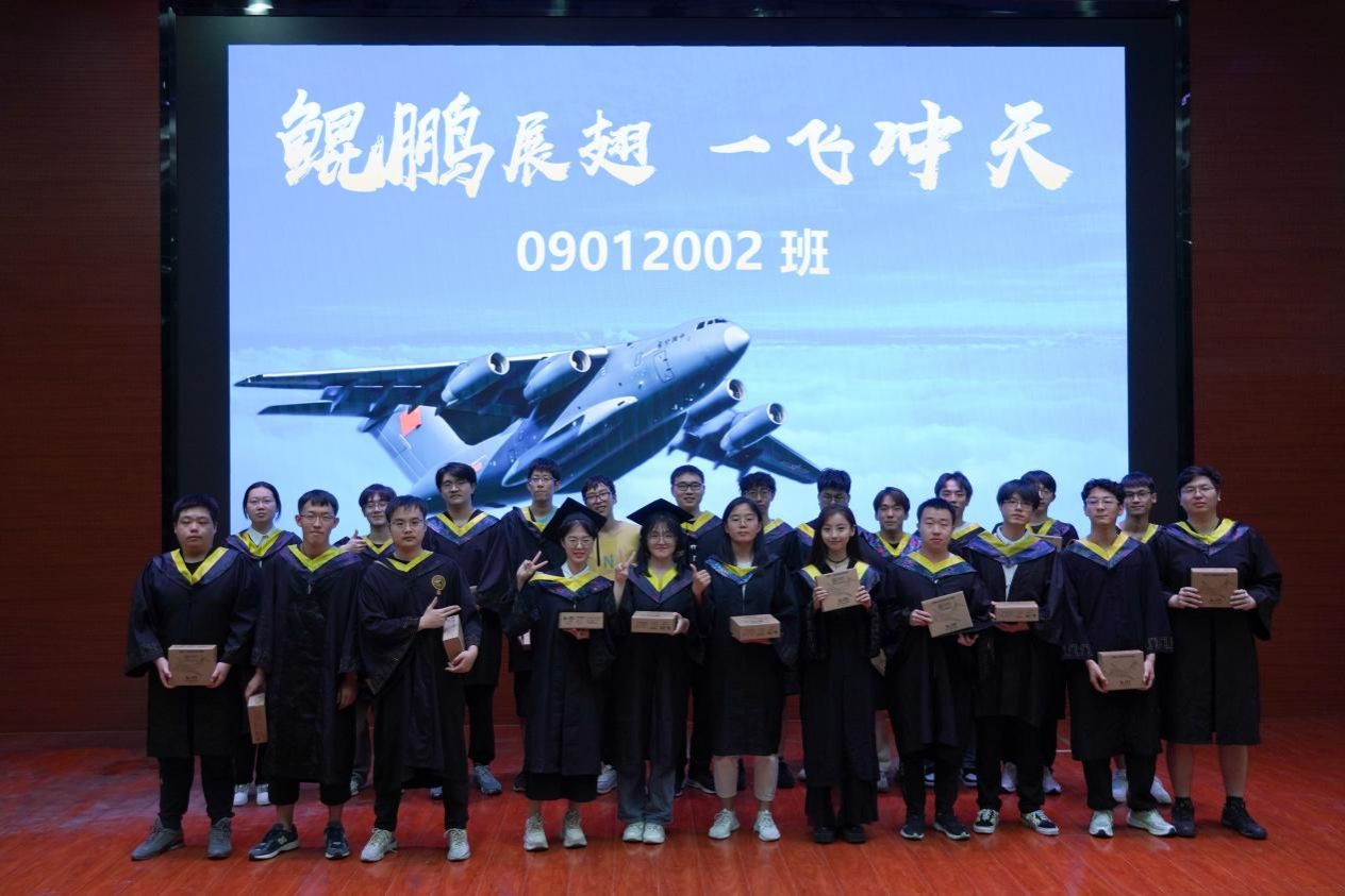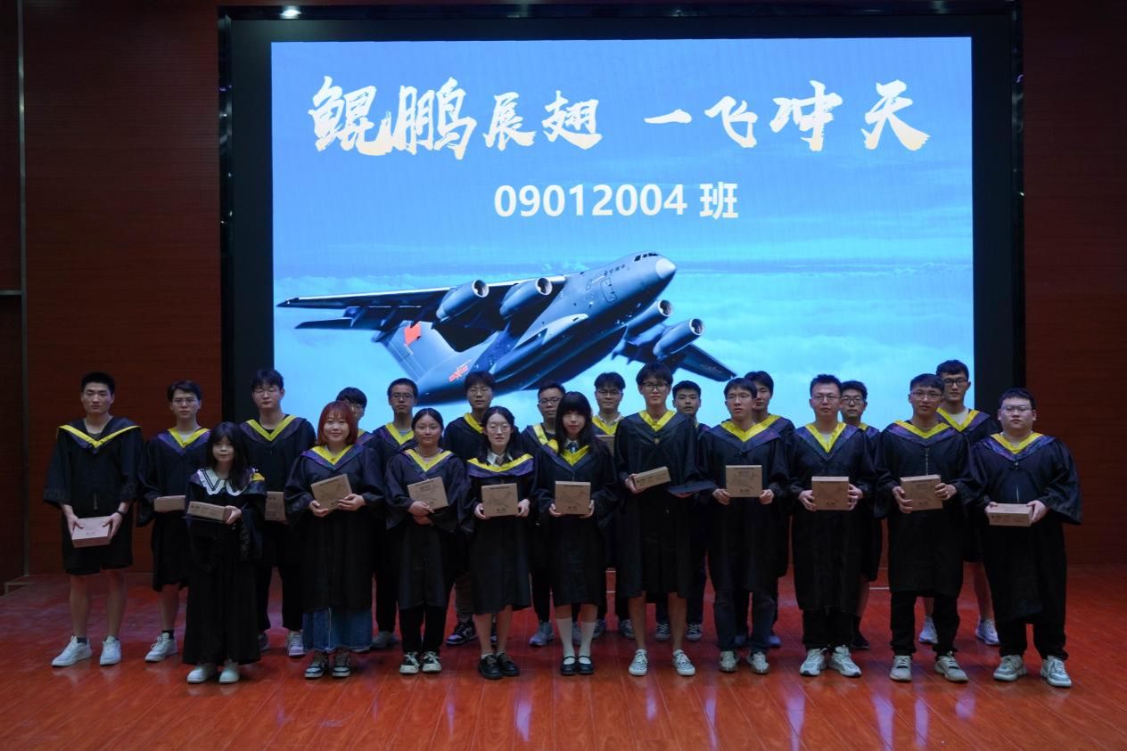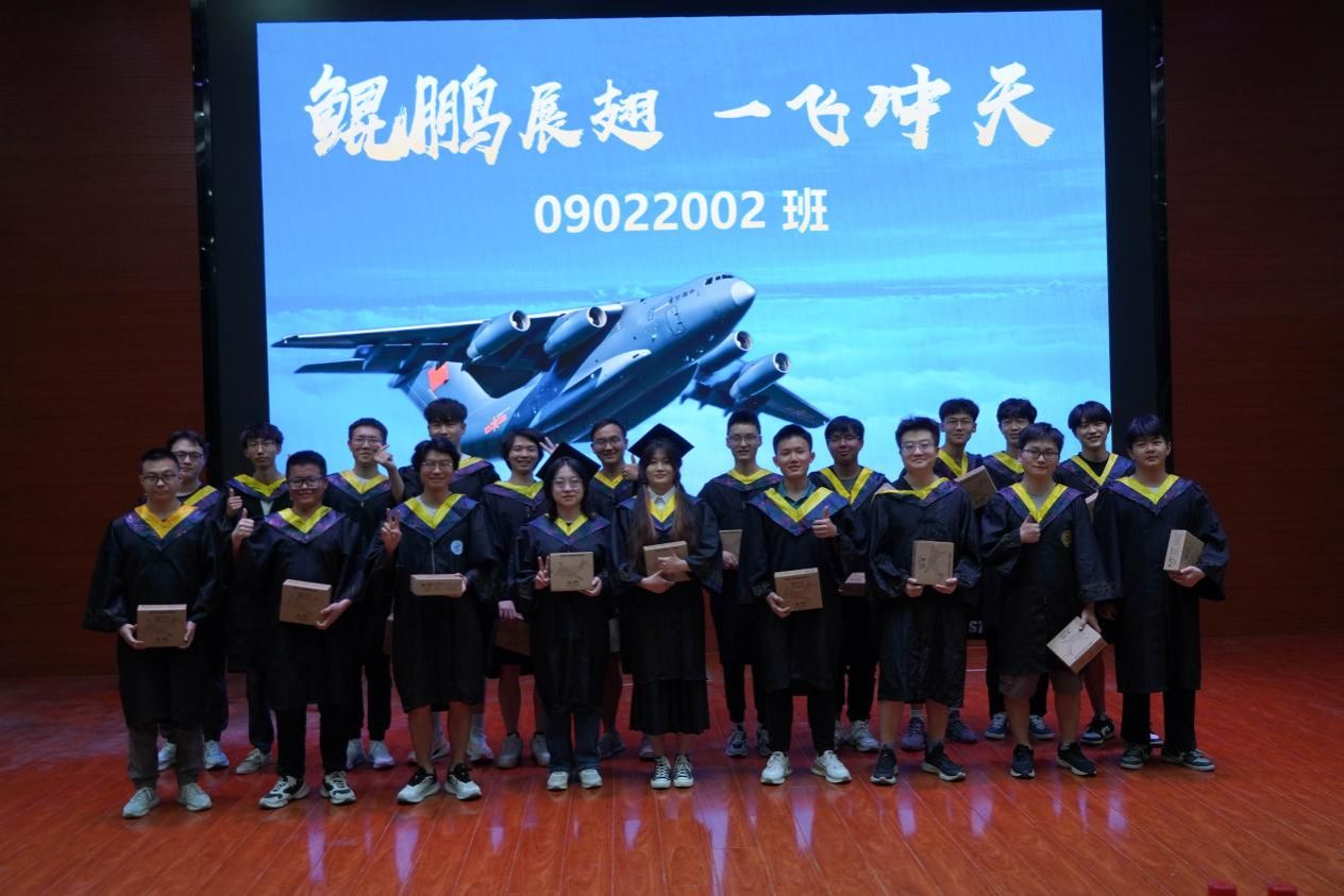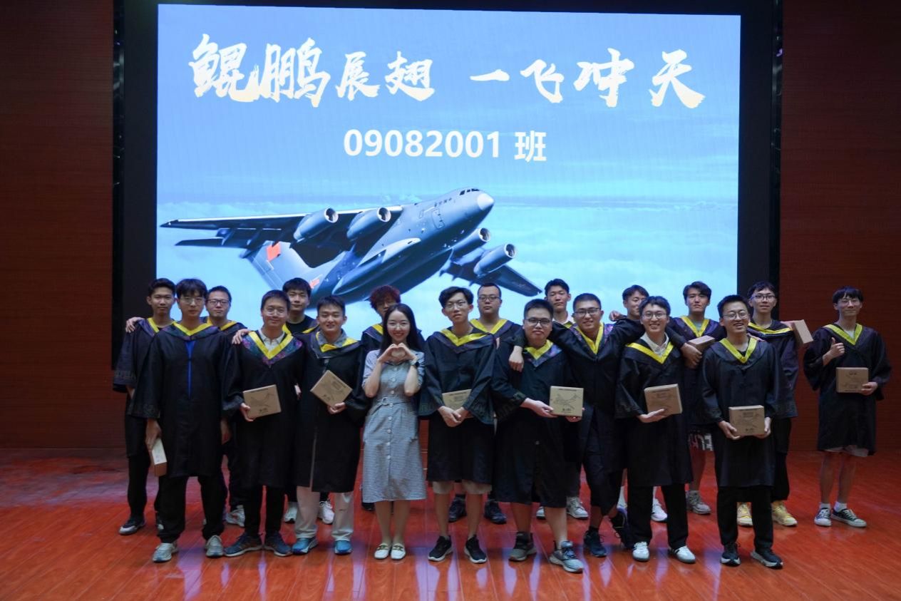 校友黑文静为毕业生讲授了“总师思政课”——《鲲鹏展翅九万里 长空无涯任搏击》,她讲述了运-20研制初期在时间紧、任务重、经验少的情况下,团队以坚定的信念及奋力进取的创新精神,经过无数次的推演、试验、验证,从无到有,实现了“五年首飞,八年交付”的“中国速度”,用加速度走出了一条我国自主创新研发大飞机的成功之路。她回顾了运-20成功首飞以来数次执行重大任务,助力我国经济和国防现代化建设事业高速发展的光辉历程。此外,她以中国第一型自主研发的歼击轰炸机总设计师陈一坚的航空报国事迹以及航空小夫妻十年“孕育”国之重器的经历,勉励广大毕业生在国家需要中绽放梦想,在急难险重中锤炼意志,在想用就有中实现成长。易正阳代表学院为黑文静颁发巨乳做爱