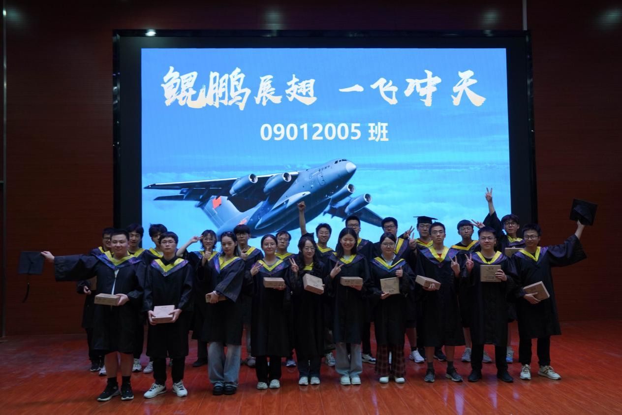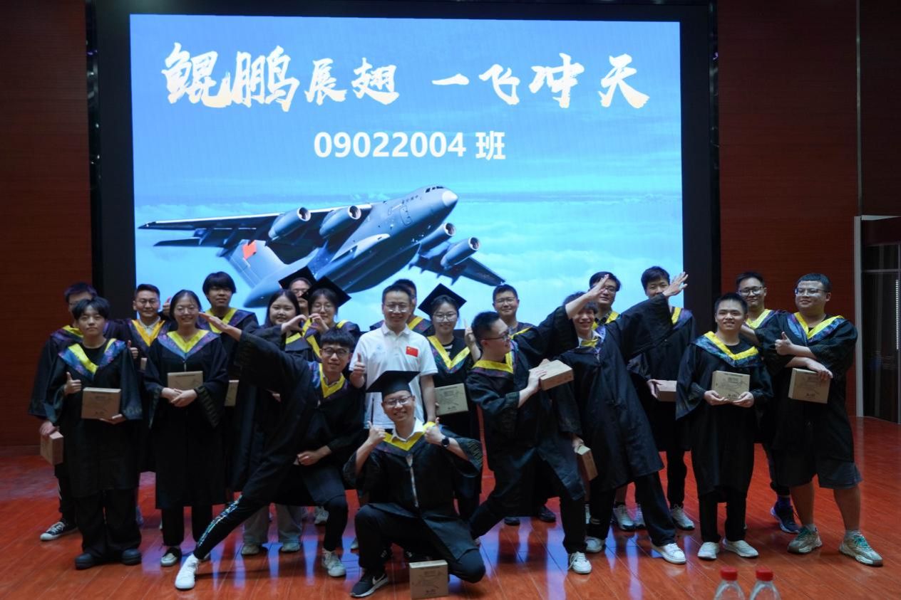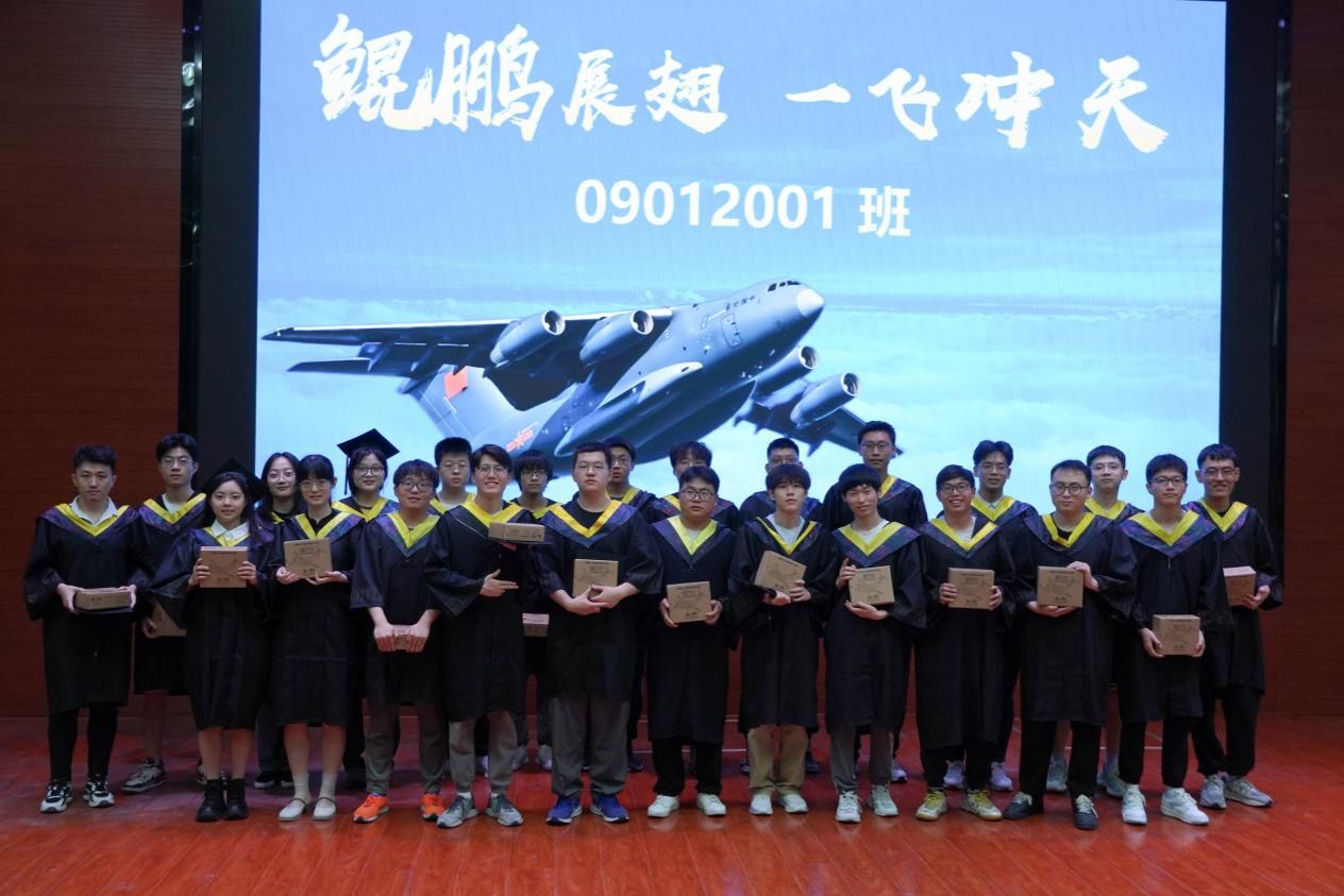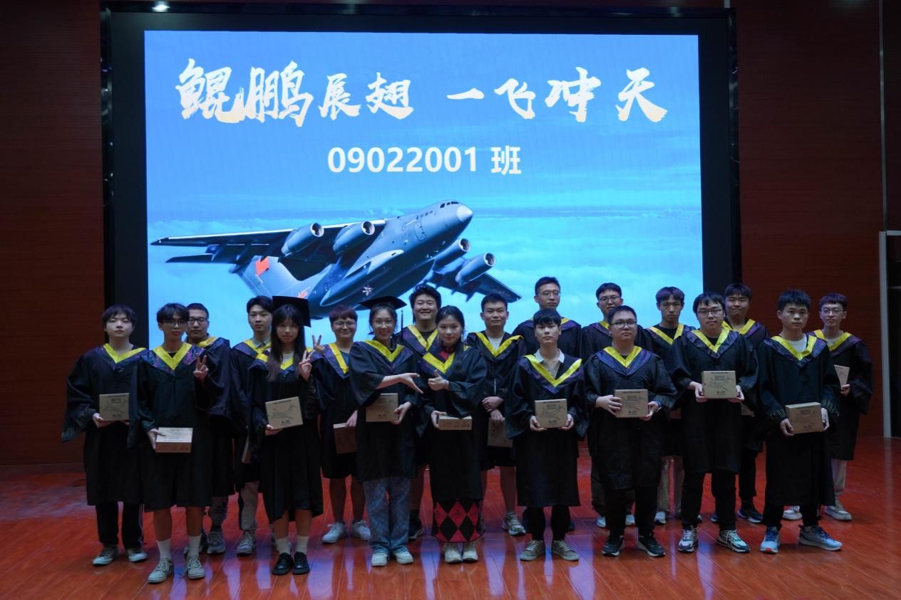 校友黑文静为毕业生讲授了“总师思政课”——《鲲鹏展翅九万里 长空无涯任搏击》,她讲述了运-20研制初期在时间紧、任务重、经验少的情况下,团队以坚定的信念及奋力进取的创新精神,经过无数次的推演、试验、验证,从无到有,实现了“五年首飞,八年交付”的“中国速度”,用加速度走出了一条我国自主创新研发大飞机的成功之路。她回顾了运-20成功首飞以来数次执行重大任务,助力我国经济和国防现代化建设事业高速发展的光辉历程。此外,她以中国第一型自主研发的歼击轰炸机总设计师陈一坚的航空报国事迹以及航空小夫妻十年“孕育”国之重器的经历,勉励广大毕业生在国家需要中绽放梦想,在急难险重中锤炼意志,在想用就有中实现成长。易正阳代表学院为黑文静颁发巨乳做爱