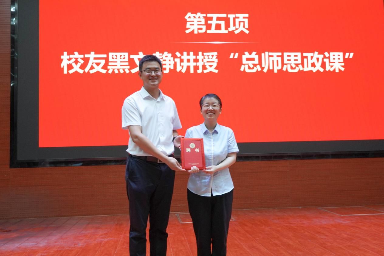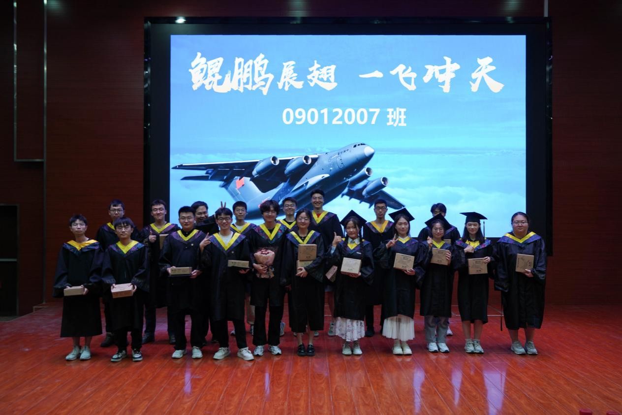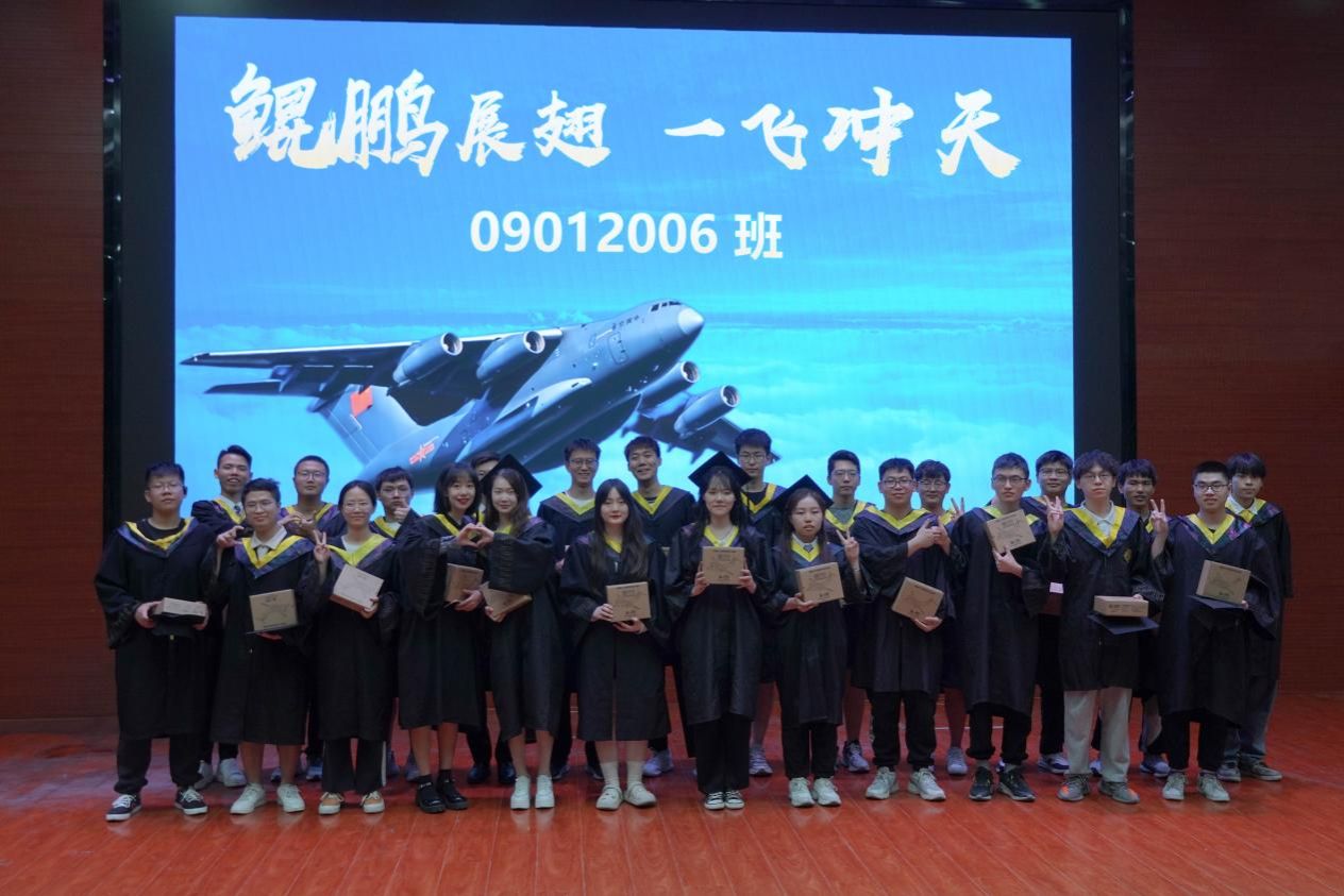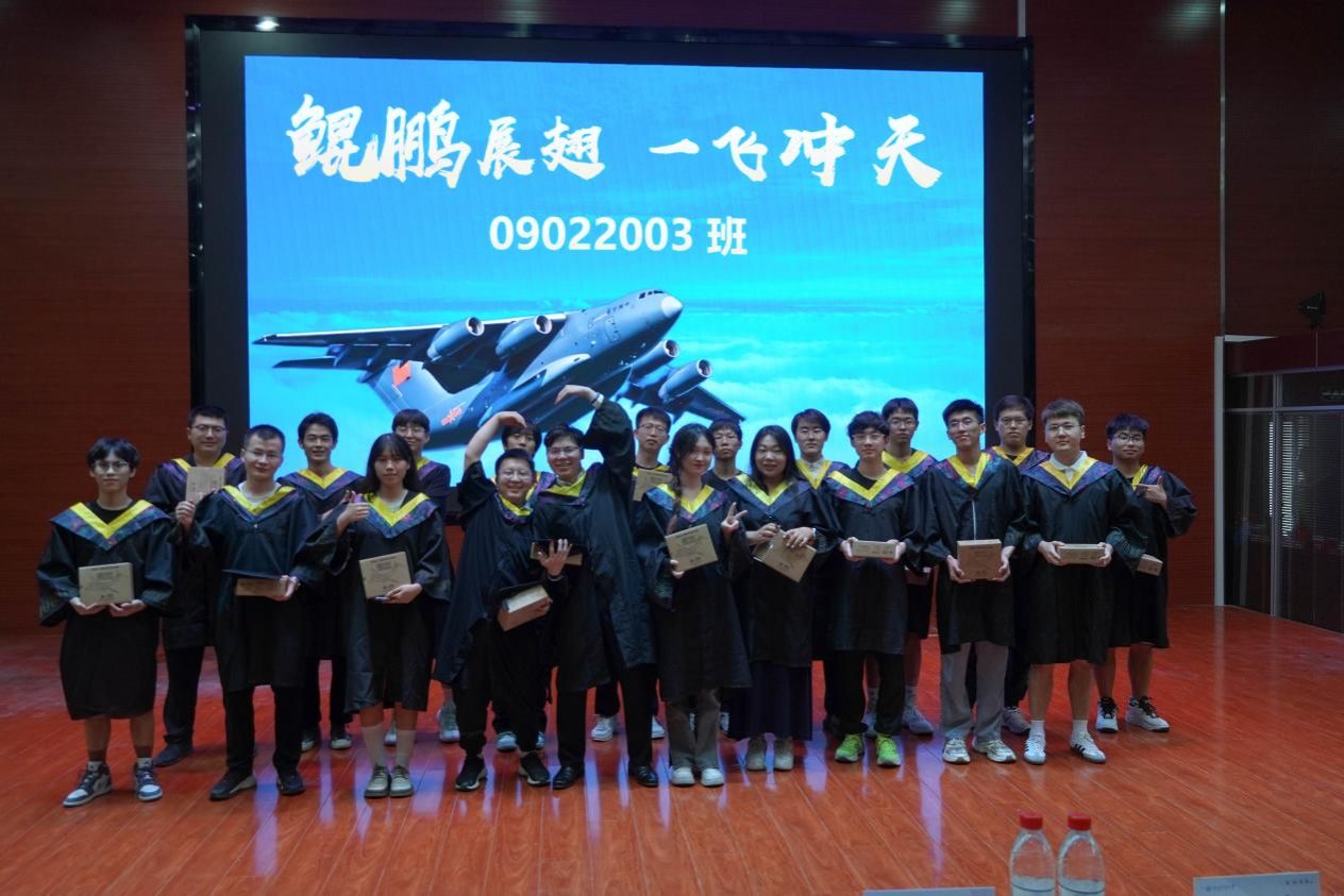 校友黑文静为毕业生讲授了“总师思政课”——《鲲鹏展翅九万里 长空无涯任搏击》,她讲述了运-20研制初期在时间紧、任务重、经验少的情况下,团队以坚定的信念及奋力进取的创新精神,经过无数次的推演、试验、验证,从无到有,实现了“五年首飞,八年交付”的“中国速度”,用加速度走出了一条我国自主创新研发大飞机的成功之路。她回顾了运-20成功首飞以来数次执行重大任务,助力我国经济和国防现代化建设事业高速发展的光辉历程。此外,她以中国第一型自主研发的歼击轰炸机总设计师陈一坚的航空报国事迹以及航空小夫妻十年“孕育”国之重器的经历,勉励广大毕业生在国家需要中绽放梦想,在急难险重中锤炼意志,在想用就有中实现成长。易正阳代表学院为黑文静颁发巨乳做爱