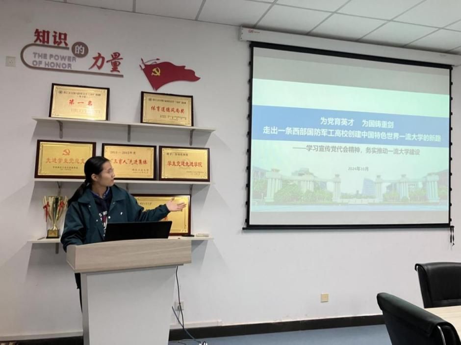 第十四次党代会精神宣讲会。研究生第十六党支部书记王呈祥主持会议。