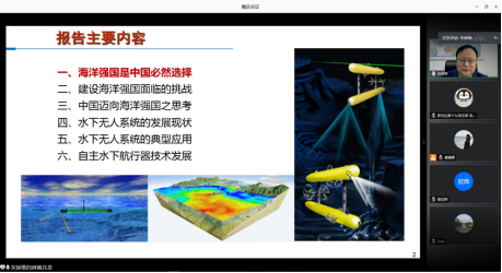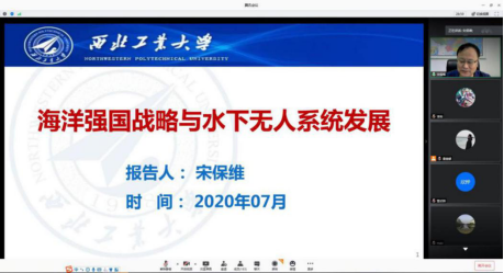 随后,宋保维副校长为全体师生党员上了一堂精彩的思政课。宋校长分析了建设海洋强国所面临的挑战,强调了海洋强国的紧迫性和重要性,指出海洋强国是中国的必然选择,是我国强国战略中非常重要的一部分。宋校长讲述水下无人系统的发展现状、典型应用以及自主水下航行器技术的发展,并对我院师生提了“探索深蓝”的要求,希望广大师生常怀报国凌云志,为海洋强国战略贡献智慧和力量。