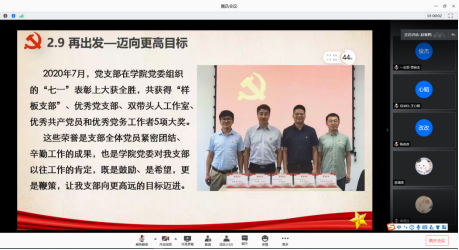 研究生第十九党支部书记张洵对其所在支部发展建设与活动开展情况进行汇报。智能科学与技术系党支部书记赵春晖介绍了教工支部的基本情况、支部特色活动以及下一步工作规划。重点分享了支部西柏坡学习、一加一扶贫等党建特色活动,并表明了将继续争创优秀支部,巩固党建成果的信心和决心。