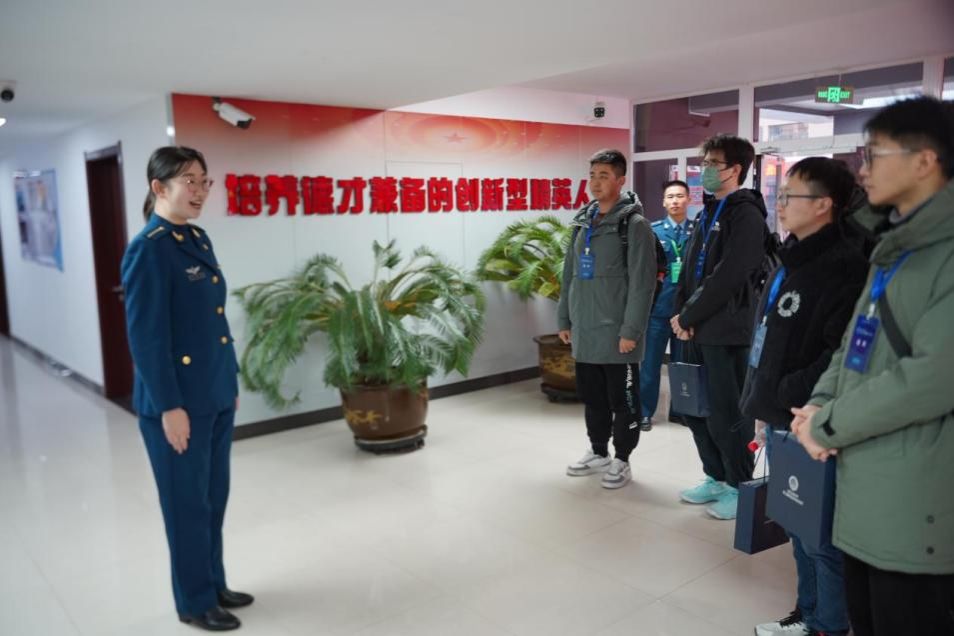 师生一行在空军工程大学同学的讲解下,参观了从思政教育、学科牵引、体系培养、研战创新四个方面展开的研究生教育创新成果展,并进入研究生院二大队宿舍楼,走进了思政教育室、俱乐部等,深刻体会到军校研究生勤奋好学、严谨自律的良好作风。