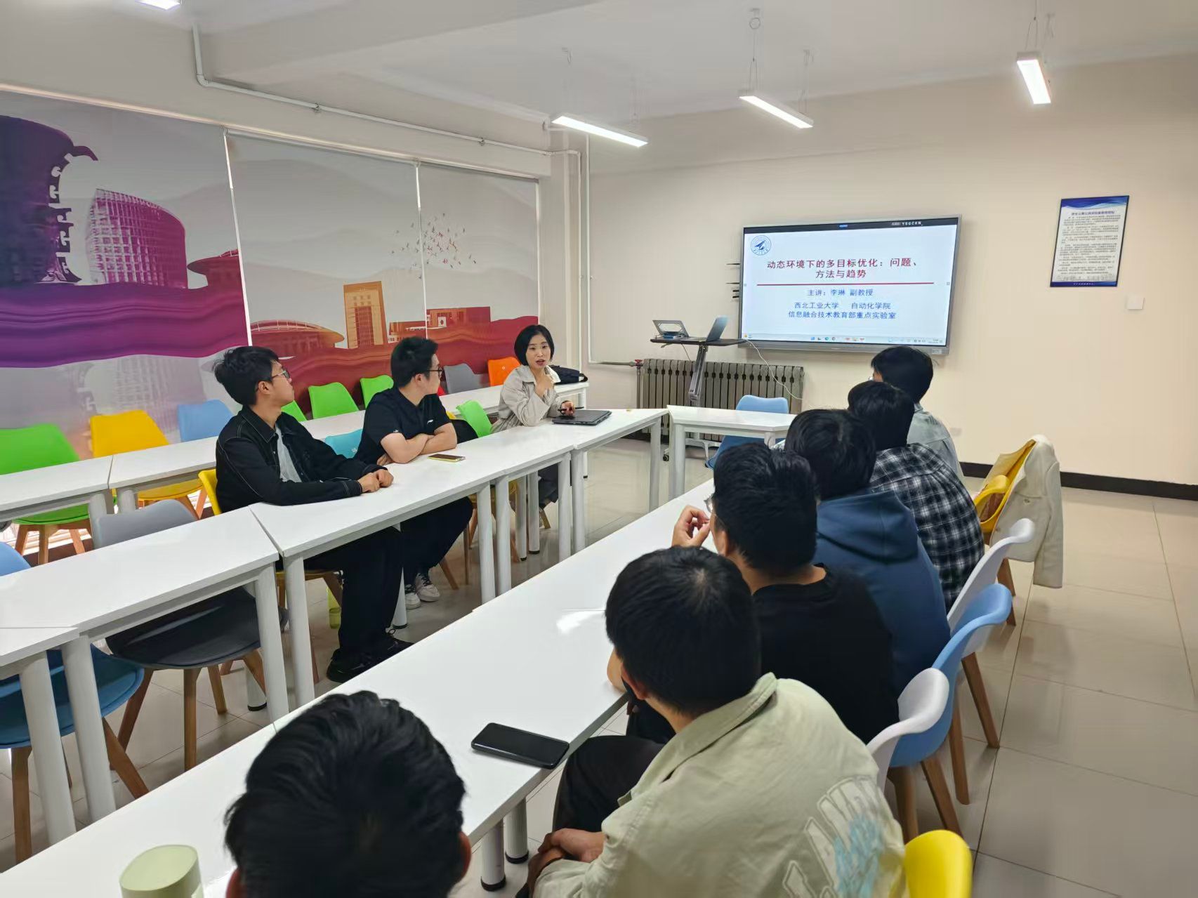 在星天苑E座一楼思创空间开展了第八期“小9有约·午间一小时”活动。李琳副教授详细介绍了自己团队的研究方向及实验室团队的建设情况,并结合实验数据向同学解释了如何完成动态环境下的多目标优化。接着,李老师就自身经验向同学们讲述了大学生应有的学习态度,她说,我们应努力将书由厚读到薄、再由薄读到厚,既须具备提纲挈领的能力,又须具备拓展迁移的能力。在互动环节中,李老师鼓励同学们积极参与学院和学校活动,充分挖掘并利用好校园内丰富的现有资源,在实践与探索中拓宽视野、增长才干,让大学生活更具广度、深度与色彩。