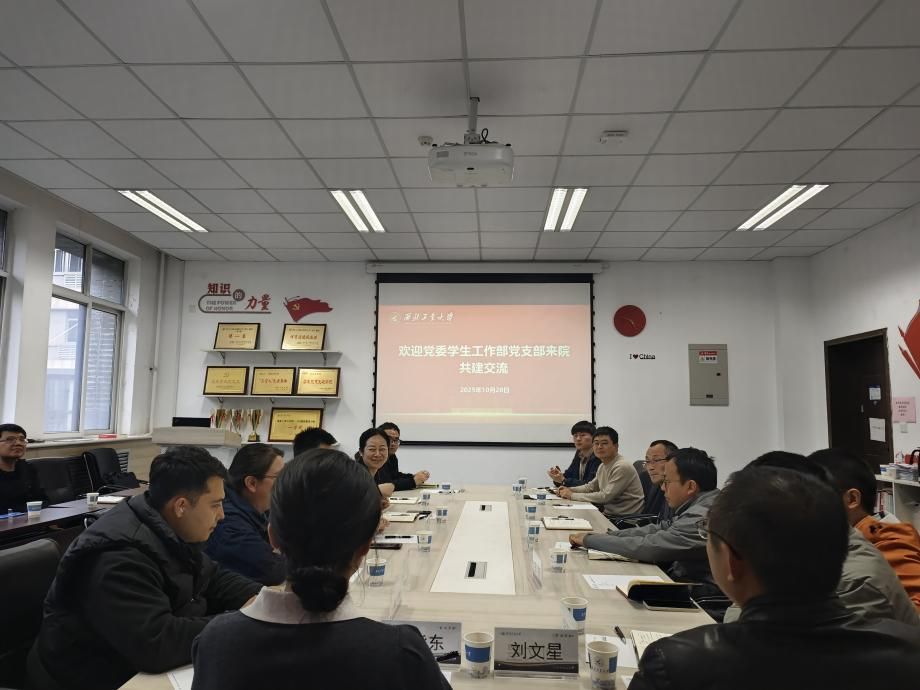 孙华强对学校党委学生工作部党支部一行的到来表示欢迎,并简要介绍了与会人员情况。他表示,此次共建交流是学院向学校主管部门学习取经的宝贵机会,希望双方能以党建为引领,围绕学生思想政治教育的难点、学生管理服务的堵点以及学生成长发展的焦点问题,进行深入探讨,共享经验资源,切实将共建成果转化为推动学生工作高质量发展的强大动力。