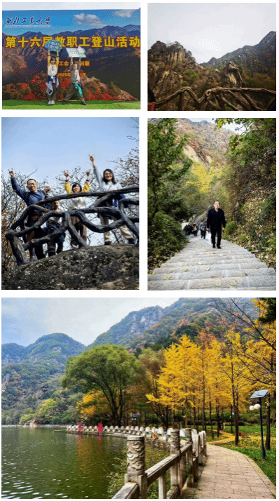 秋风润景,层林尽染。伴随着清脆的集合哨声,教职工们兴致高昂、阔步向前,踏着欢乐的步伐向山顶进发。大家行走在蜿蜒山道、穿行于茂密林间、俯瞰着群山云海,或驻足欣赏,或拍照留念,品味着翠华秋韵、地质奇观,领略着山清水秀之美。一路上,教职工们不畏困难、勇往直前,高涨的热情和欢声笑语贯穿于整个山间,形成了秋日里一道靓丽的风景线。