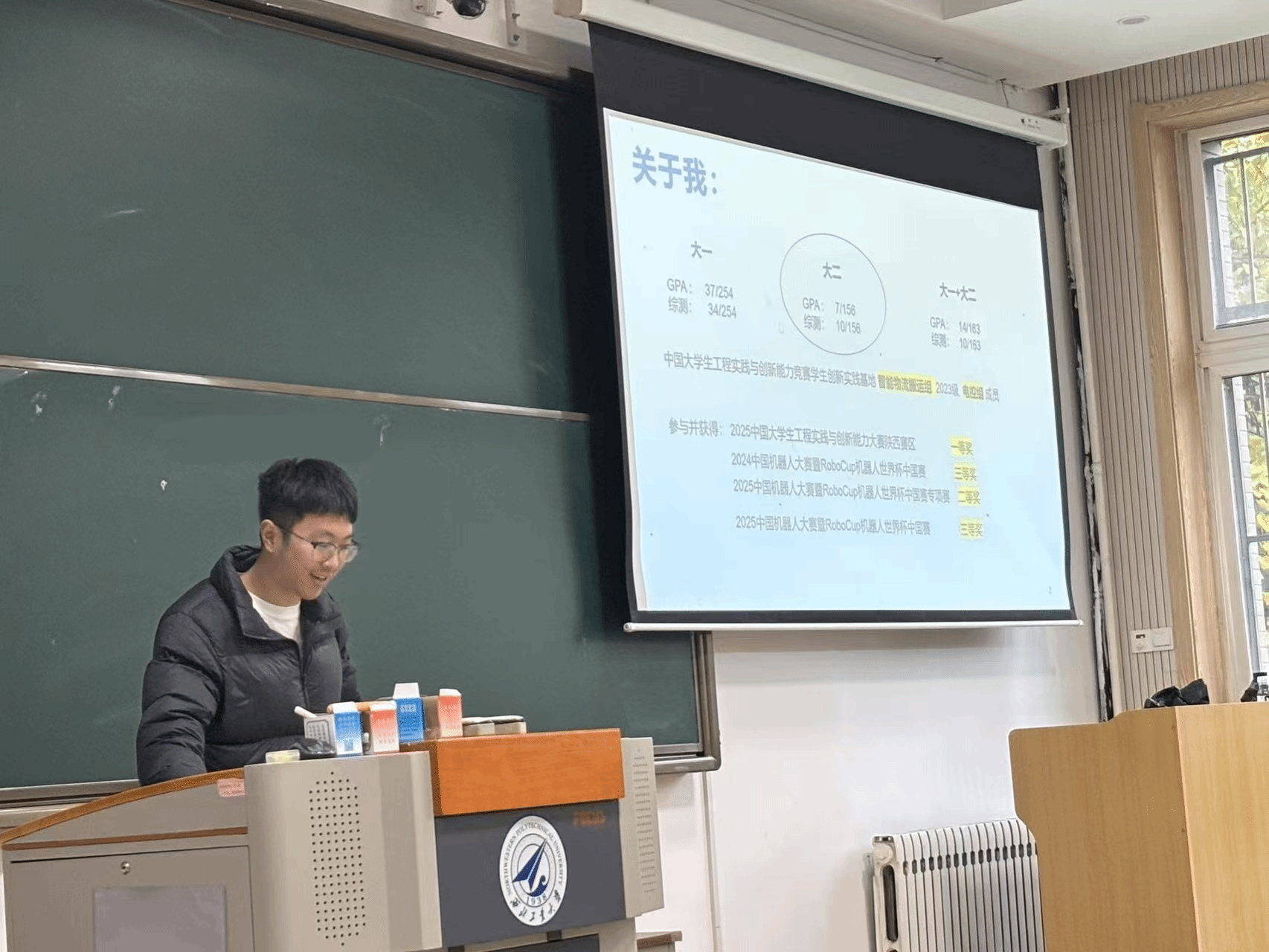 付宇航多次获得机器人国赛奖项,他在经验分享中鼓励同学们主动尝试智能无人系统、工训等基地,即使未通过考核,准备过程本身就是一次自我突破的成长。并且,他提倡明确方向与规划,寻找志同道合的伙伴相互支持,通过合作项目实现共同进步。付宇航希望同学们能在迷茫中积极调整心态,以持续进步为目标,不断优化学习与生活节奏。