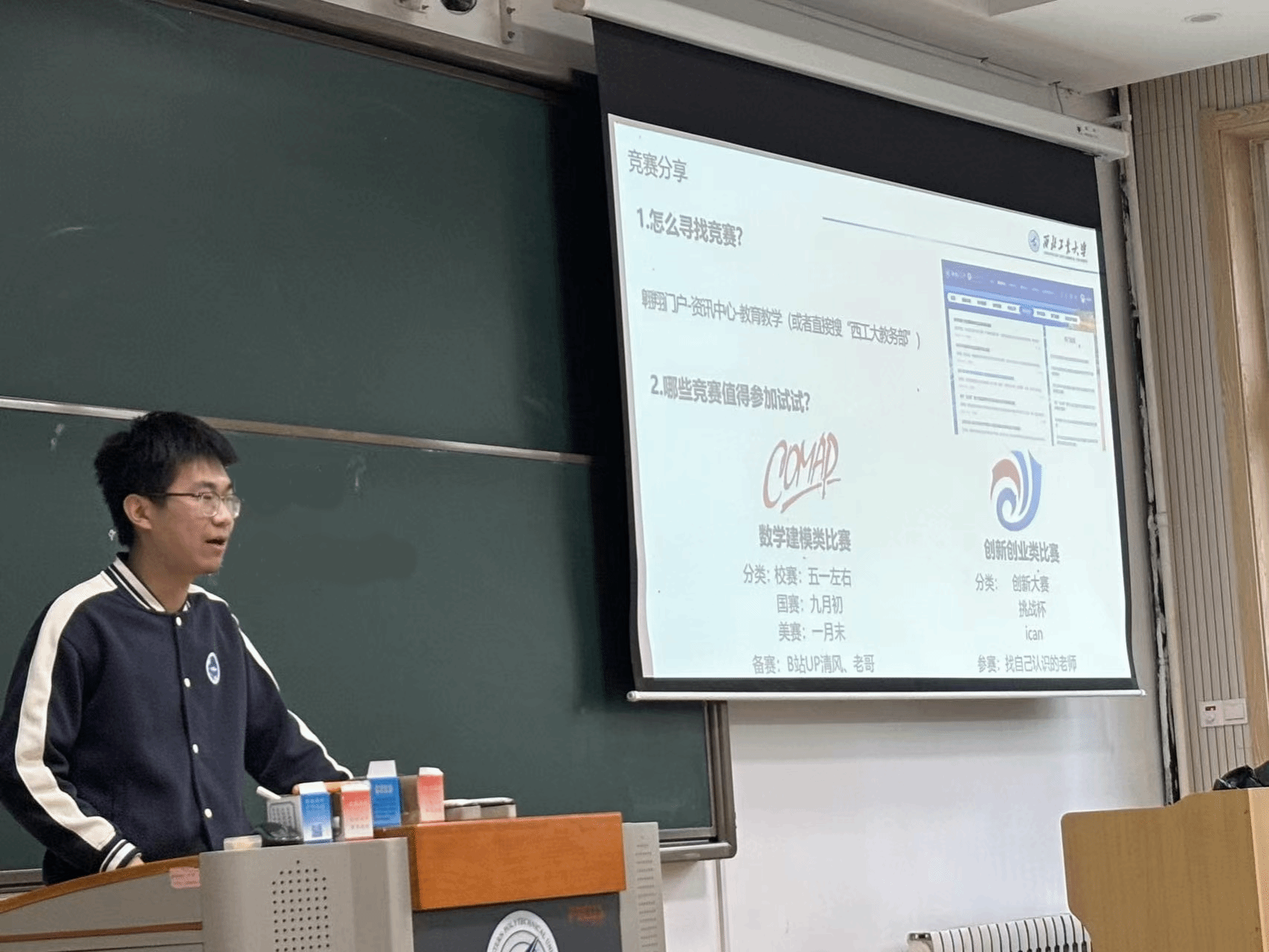 侯钰坤作为铸剑班成员,他建议大家以赛促学,拓展能力边界,主动联系熟悉领域的教师指导参赛。同时,他还建议同学们列好日程表,明确任务优先级;通过体育运动保持头脑清醒,以提高学习效率。最后,侯钰坤鼓励同学们以行动为导向,在探索中积累,在坚持中突破,但行好事,莫问前程。