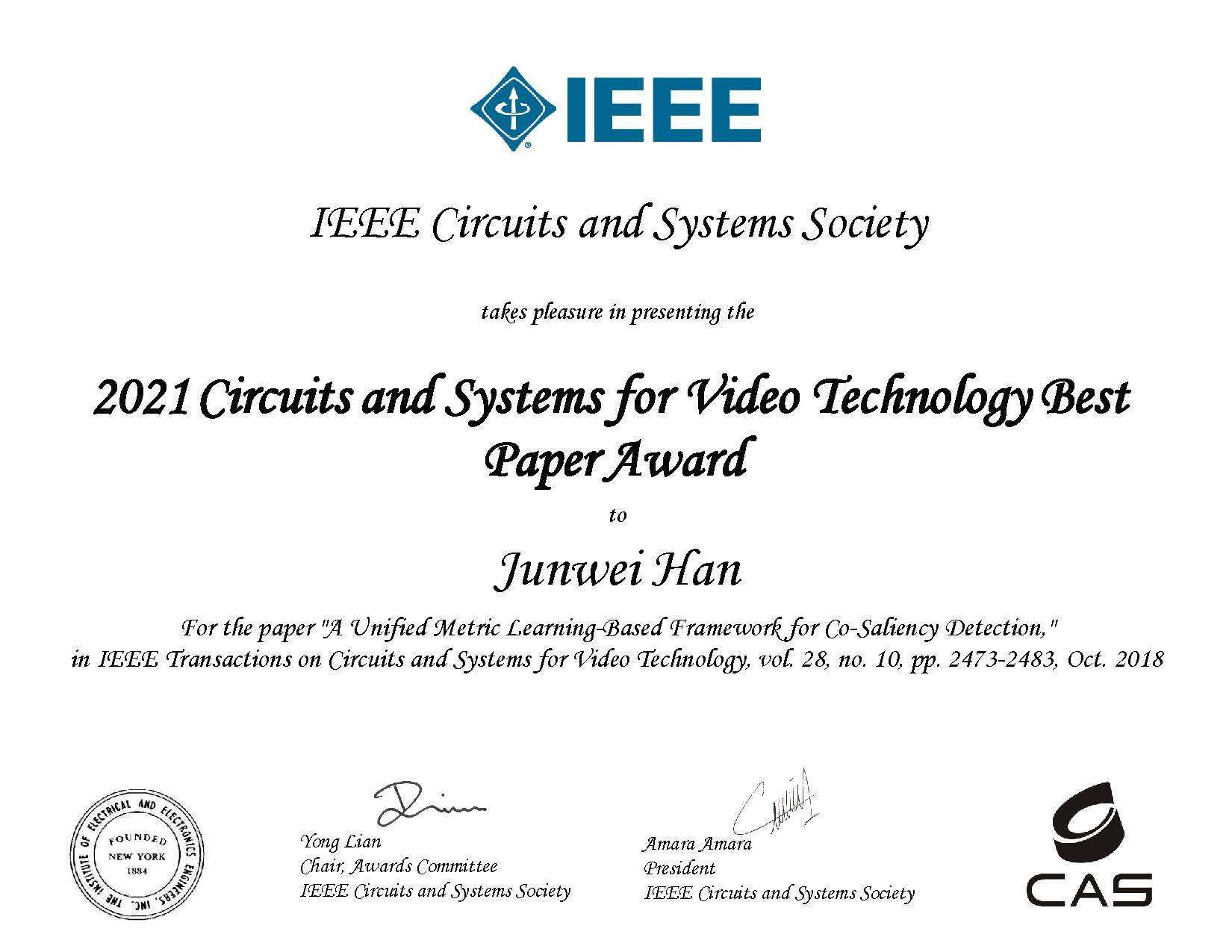该奖项由IEEE CASS(IEEE电路与系统学会)设立,是多媒体领域最有影响的论文奖项之一,综合考虑论文的原创性、实用性和影响力,从过去三年发表在IEEE TCSVT上的900余篇论文中评选而出,每年最多有1篇论文入选(有时空缺)。巨乳做爱