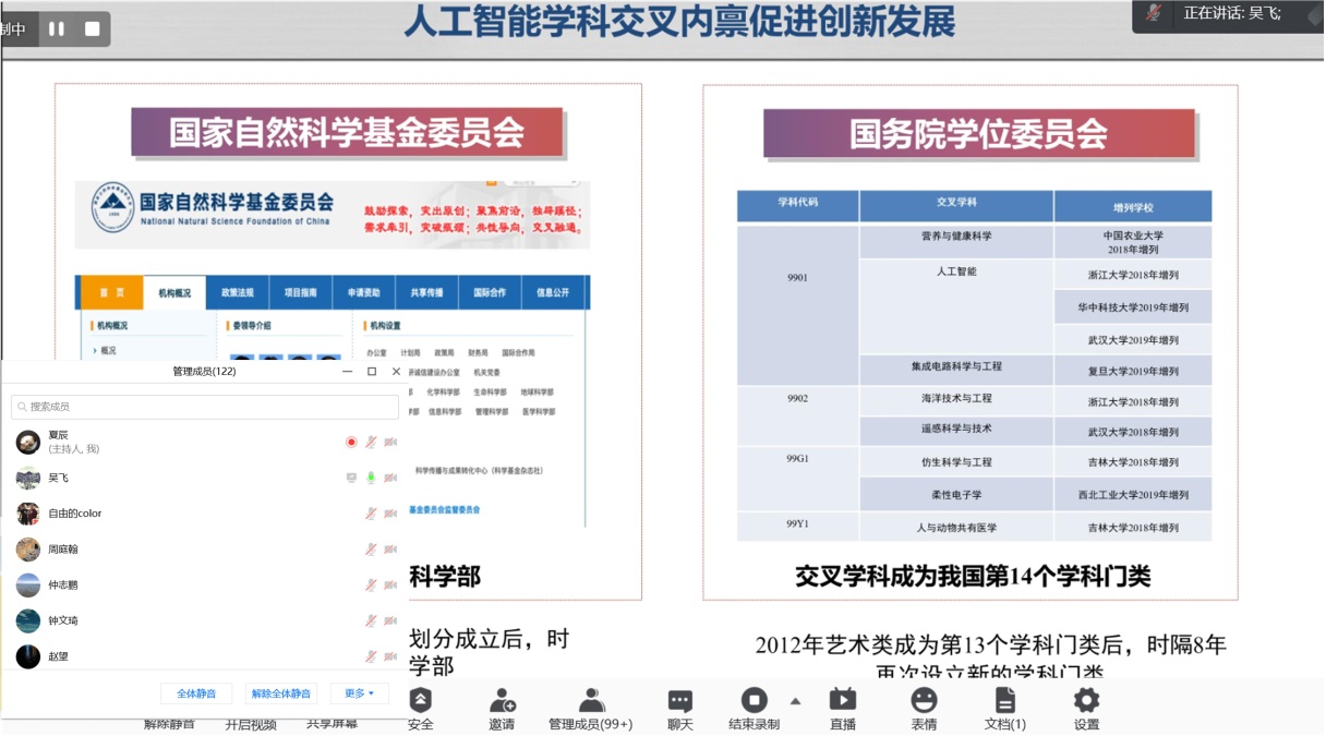 郭雷教授邀请浙江大学人工智能研究所吴飞教授开展题为“AI+X驱动科学发现”的线上学术报告。120余名相关领域老师与学生参加了此次报告。