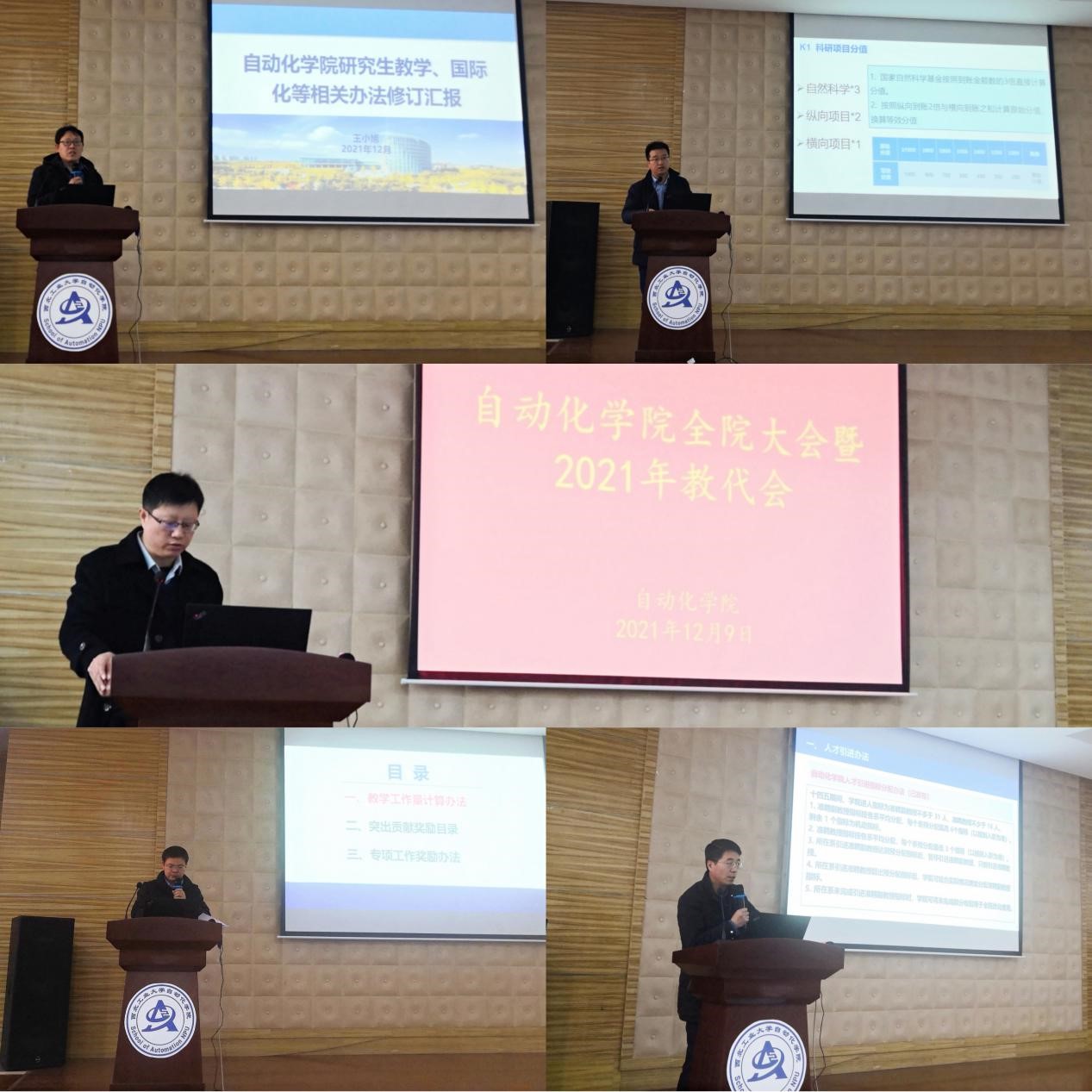 在学院报告厅召开全院大会暨2021年教代会,就教学工作量计算办法、硕士研究生招生指标分配办法、奖励绩效分配方案等制度文件进行解读,并提交教代会审议。学院领导班子全体成员参会。会议由学院党委书记韩军伟主持。