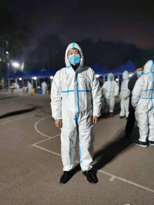 党委委员之一,同时担任导航制导与控制系系主任。作为党员领导干部,不论是学院的大小事务,还是各类的志愿服务和捐款捐物活动,总能看到他积极参与的身影。此次疫情,他依旧以一名党员干部的使命感和责任感积极参与各类志愿服务。当听到学校要组织志愿者报名,他第一时间主动向所在党支部请战。王老师先后参与多次核酸检测志愿服务、防疫物资卸运等工作,不论是白天还是黑夜,甚至在凌晨的月光下,王老师都始终站在防疫工作的第一线。