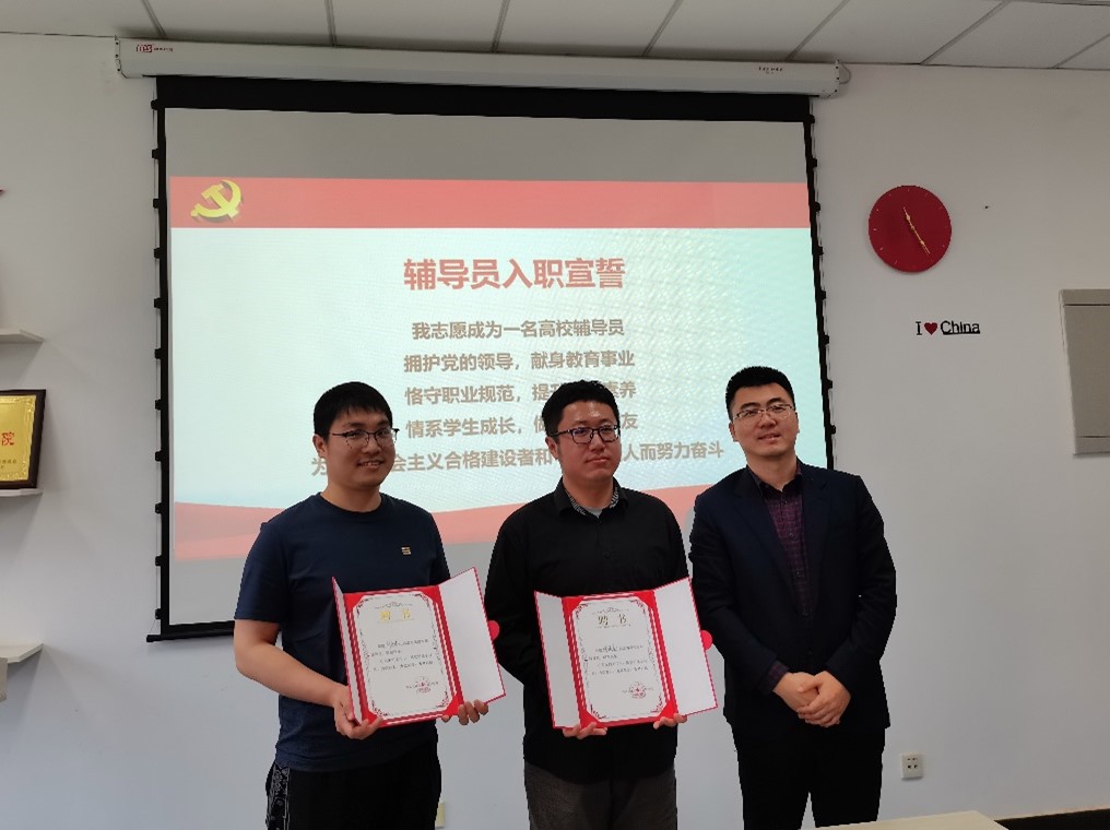 在宣誓环节,管峻带领辅导员进行庄严宣誓,希望在后续工作中以誓词要求为引领,为培养社会主义合格建设者和可靠接班人而努力奋斗。两位新任辅导员表示将汲取前辈的经验,用满腔的热血和情感投入到学生工作中,用仁爱之心做学生的良师益友,让学生满意,让家长安心,让学院放心。