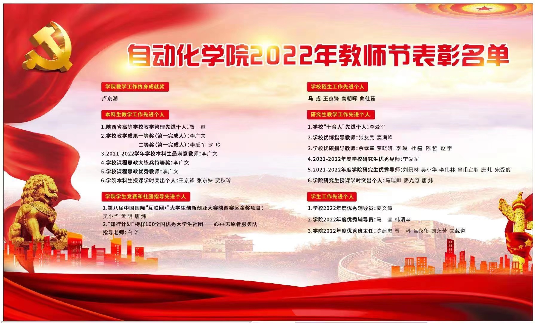 党委副书记管峻宣读学院2022年教师节表彰名单。此次全院共有37名优秀教师受到表彰,涵盖了招生、本科生培养、研究生培养、学生工作等人才培养全过程。