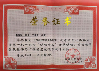 3-《智能控制理论及应用》课程评优证书