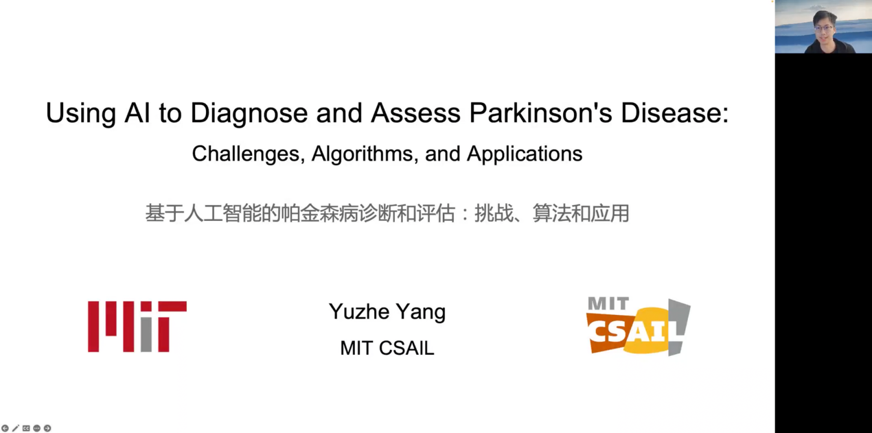 来自麻省理工学院的杨宇喆作了题为“通过AI实现利用夜间睡眠呼吸信号的帕金森症的诊断和长期监测”的报告,介绍了帕金森症的研究现状,指出帕金森症的诊断缺乏有效的生物标志物,严重程度无从评估,病情难以跟踪。针对这三项难题,他依次分享了团队的研究工作,介绍了一种人工智能驱动的健康医疗应用,通过AI模型诊断和评估帕金森症,对患者病情进行长期的跟踪。此外,杨宇喆还介绍了他在这项研究中确定并提出的两个实际的继续学习问题——深度不平衡回归问题和多余长尾识别的问题,用于解决现实生活中医疗数据上遇到的困难和挑战。杨宇喆提到,未来还需要更加通用的学习算法,来支持更多现实世界中的医疗诊断,以及其它更具挑战性的问题和任务。在问答环节,杨宇喆以丰富的科研经验和精湛的专业知识,解答了现场专家学者的提问,对“如何从现实问题中抽象出机器学习算法”、“声音信号与生理信号有何区别与联系”、“为何选择夜间睡眠呼吸作为帕金森症标志物”等问题做出详细解答。