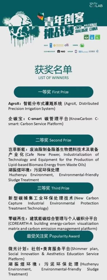 学生首次参加的由联合国相关机构举办的国际创业比赛,团队成员与毕业于清华大学、上海交通大学、牛津大学、剑桥大学、普渡大学、麦吉尔大学、杜克大学、加州伯克利大学等国内外知名高校的60余位创客,以及美国橡树岭国家实验室、联合国环境署等青年创业者及年营收规模过3000万的创业项目同场竞技,拔得头筹。本次比赛获奖情况受到了中国新闻网、中国青年报等多方主流媒体的广泛报道。